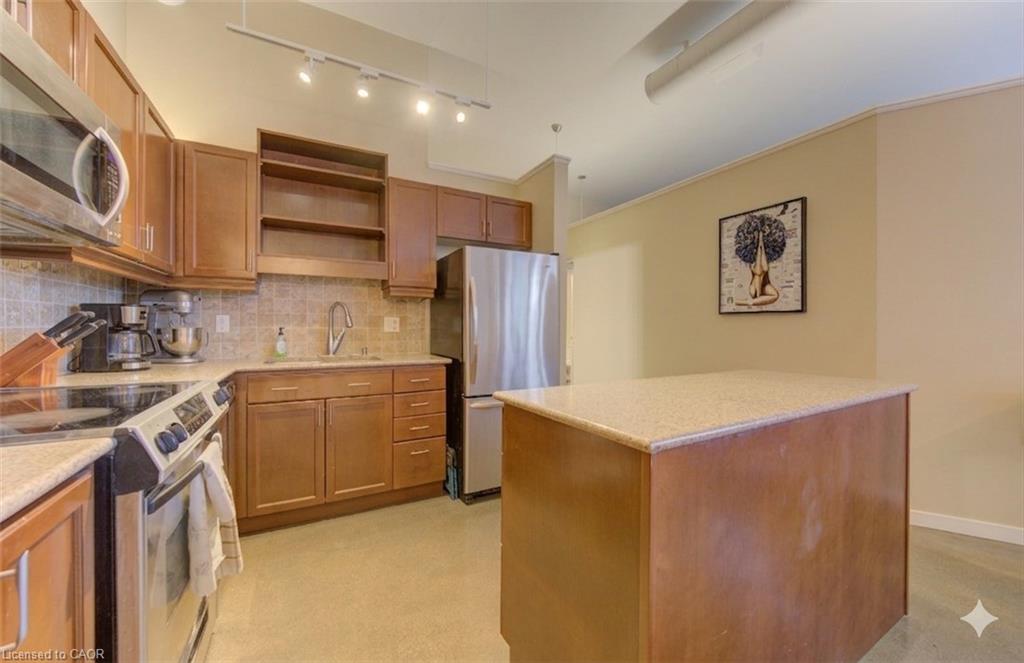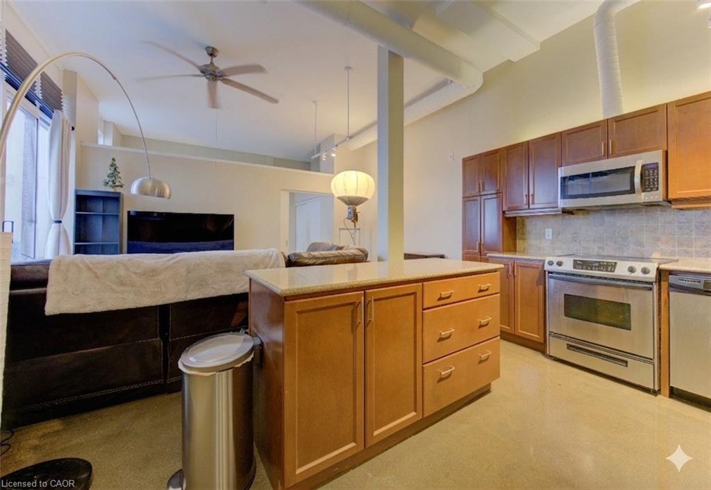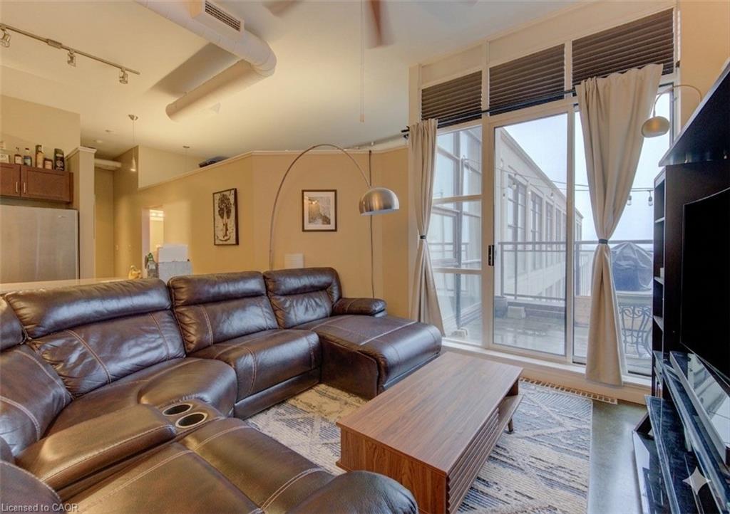 PENTHOUSE unit at Kaufman Lofts in the heart of the Innovation District. This well-appointed 2-bedroom, 2-bathroom, 2-PARKING spaces suite offers an incredible open-concept layout with a private large BALCONY and convenient access to the UPPER ROOFTOP PATIO. The kitchen features lovely cabinetry, granite countertops, stainless steel appliances, backsplash and island. Bright living space and thoughtfully designed storage throughout, including custom built-ins, granite counters in the bathrooms, large windows and 11 foot ceilings. In-suite laundry included. Comes with 2 parking spaces and a LOCKER. Residents enjoy access to premium amenities including a rooftop patio with BBQ and dining area, party/meeting room, bicycle storage, and visitor parking. Ideally located steps to major tech, Google, The Tannery, Go Station and LRT transit, UW Health Sciences Campus/McMaster University School of Medicine, financial offices, restaurants, shops, and more.