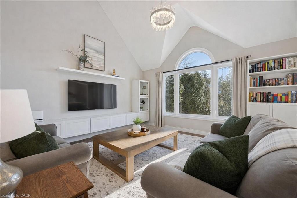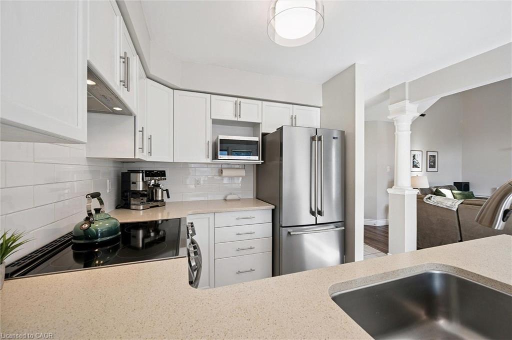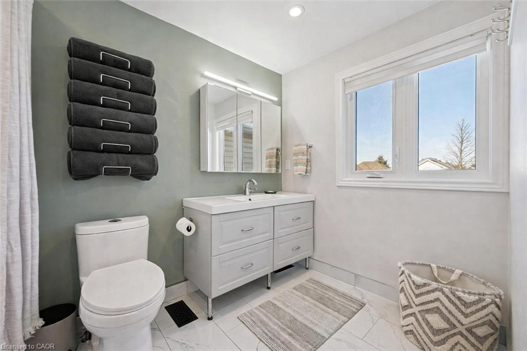 Beautifully updated & meticulously maintained 3-bdrm family home nestled on quiet crescent in sought-after neighbourhood of Westminster Woods! Upon entering you’ll notice impressive great room W/cathedral ceilings that add striking architectural detail while creating a bright atmosphere. Large arched window fills the space W/natural light & offers peaceful treed views. The space flows seamlessly into eat-in kitchen W/white cabinetry, subway tile backsplash & newer high-end S/S appliances. Spacious dining area offers sliding doors that lead to back deck allowing sunlight to pour in while creating effortless indoor-outdoor living. Convenient 2pc bath completes the level. Upstairs you’ll find a spacious primary bdrm W/elegant feature wall & large window that brings in lots of natural light. 2 add'l bdrms offer excellent closet space including one W/vaulted ceiling & beautiful arched window, adding character & charm. 4pc main bath W/sleek vanity, oversized tile flooring, tiled shower/tub & storage closet. Finished bsmt in 2020 provides add'l living space W/large rec room, window & fireplace feature wall that creates a warm welcoming space for relaxing, movie nights & entertaining. There is a stylish 3pc bath with laundry. Major updates have been taken care of providing peace of mind for yrs to come: all upstairs windows 2022, main floor & bsmt windows 2021 & new furnace & AC 2020. Outside relax & unwind on spacious deck overlooking the landscaped backyard W/mature trees. Fully fenced yard offers lots of room for kids & pets to play. Just down the street from Pineridge Trail which leads to Pineridge Park & network of scenic trails. Walking distance to St. Paul Catholic School & Sir Isaac Brock PS, one of Guelph’s top-ranked schools. Mins from Pergola Commons offering groceries, fitness, restaurants, LCBO & more. Easy access to 401 makes commuting a breeze. Wonderful opportunity to settle into a beautifully maintained home in one of Guelph’s most desirable communities