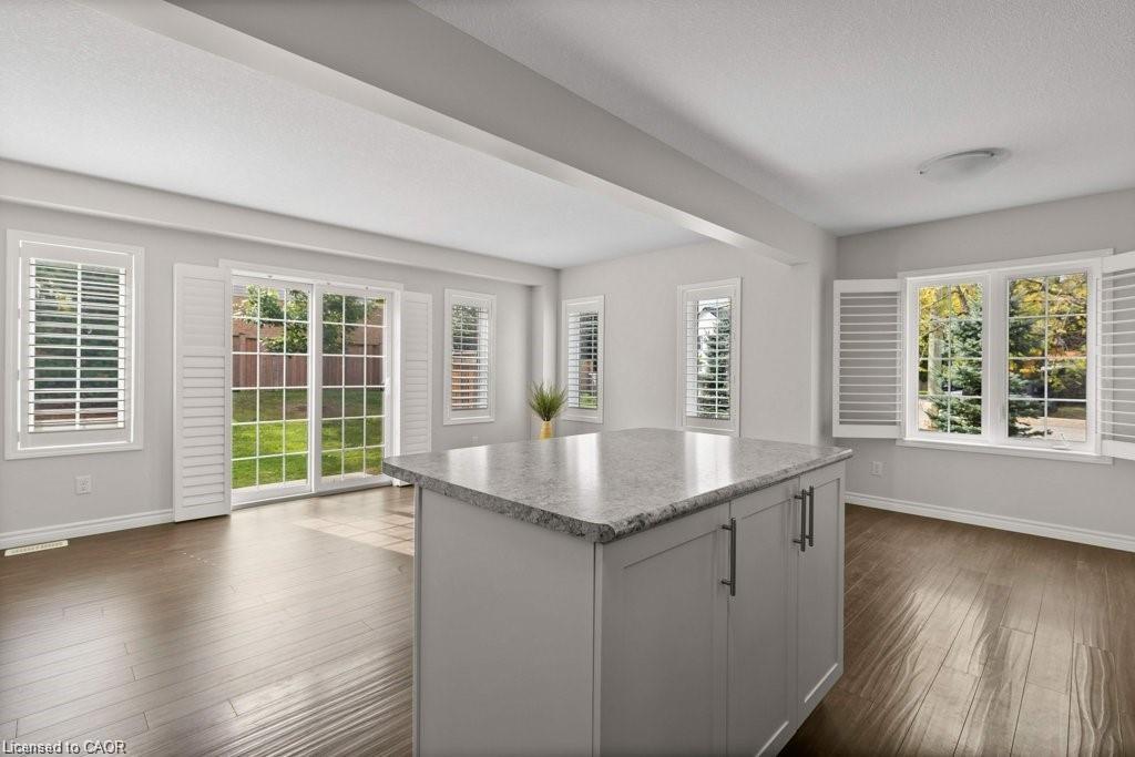 THIS ONE WILL NOT DISSAPOINT YOU. Beautiful End-unit townhome in a Great area, Minutes to Conestoga College and the 401, Very Nice well looked after complex with playground and ample visitor perking, Walking trails and the river within walking distance, The home features three bedrooms and three bathrooms. Bright White Kitchen with Stainless Steel Appliances and Island and California Shutters throughout the home and being an End Unit it has Lots of windows and is nice and bright. The Upstairs will not disappoint with a seperate Laundry Closet, Large Primary Bedroom with Dual Closets and Ensuite Bathroom, Additional Hall Feature space for office or Reading Nook, and a Main Four Piece Bathroom, The two additional well sized bedrooms.