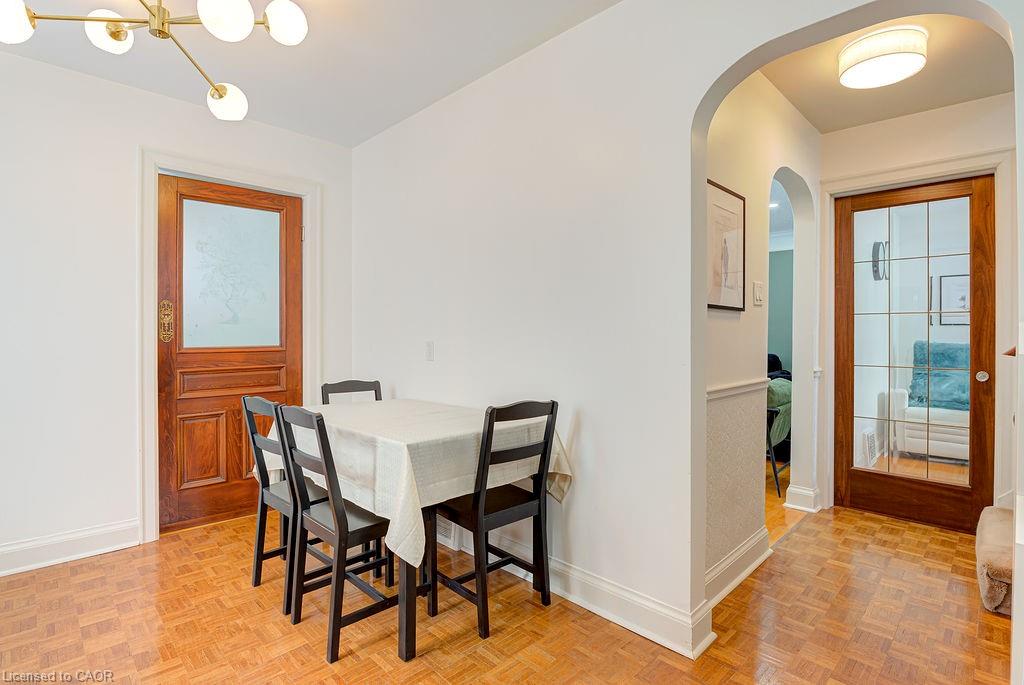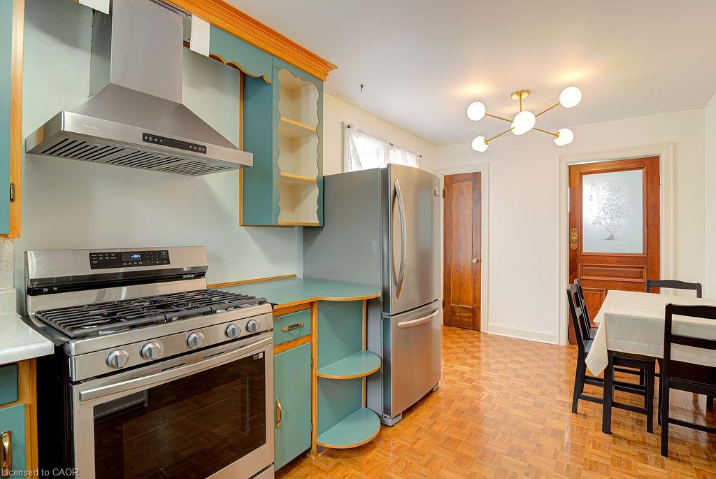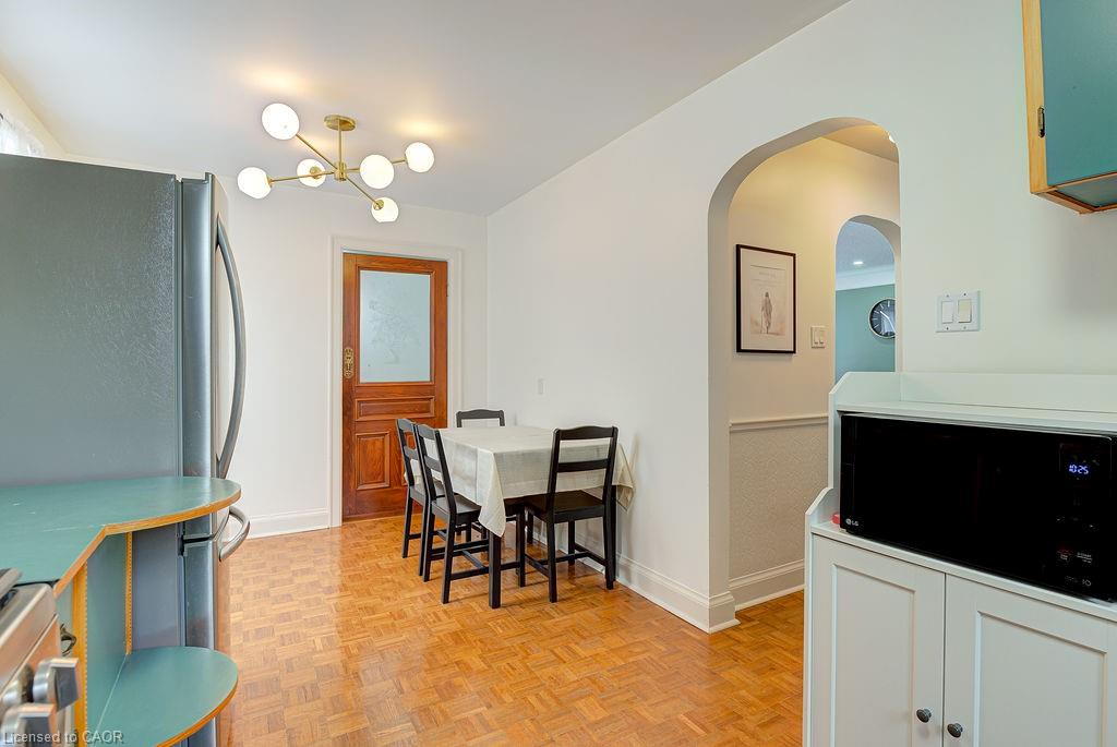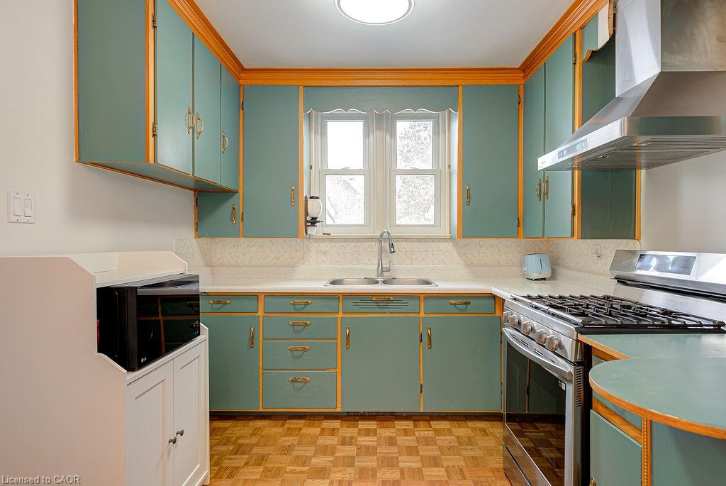 If a quiet, safe neighbourhood with mature trees and a well maintained house with vast room sizes and nostalgic charm is what you're looking for, don't pass by this super tidy and beautifully maintained home in the desirable East Ward neighbourhood of Kitchener! With three bedrooms, two full bathrooms and a large backyard, this home appeals to those who appreciate exquisite features and want a bright, spacious home that offers comfort and convenience too. The vast living room has a large picture window and newly added pot lights. As you enter the kitchen, you will notice the vintage wooden swing door with brass features and picture glass detail. The home further impresses with arched doorways, glass door handles, gleaming hardwood flooring; and the coffee grinder in the kitchen is the added topping! An absolutely gorgeous, oversized back yard comes complete with a peach tree, a plum tree, grapes and oodles of perennials (roses, tulips and more). And the white picket fence sets the stage for a groomed English garden, complete with a covered patio so you can enjoy the yard on rainy days too. An oversized garage offers enough space for a workshop area/storage and your vehicle. RECENT UPDATES: 2024/2025 include: gas line, stove and range hood, new furnace and A/C, some paint updates, upper bathroom renovation, a completely new 3 piece bathroom in the basement, flooring in the basement, asbestos professionally removed, 220v EV charger, water softener and some light fixtures. The spacious room sizes and bright windows throughout this house make it feel like a home! Tucked away in a safe and family-friendly neighbourhood yet still walkable to the AUD, Centre in the Square and shopping, including Stanley Park Mall. Centrally located to hwy 7/8 you can head any direction and leads to the 401 - ideal for commuters. With a separate entrance to the basement level, this home lends itself to an easy income helper option. See for yourself if this home is right for you!