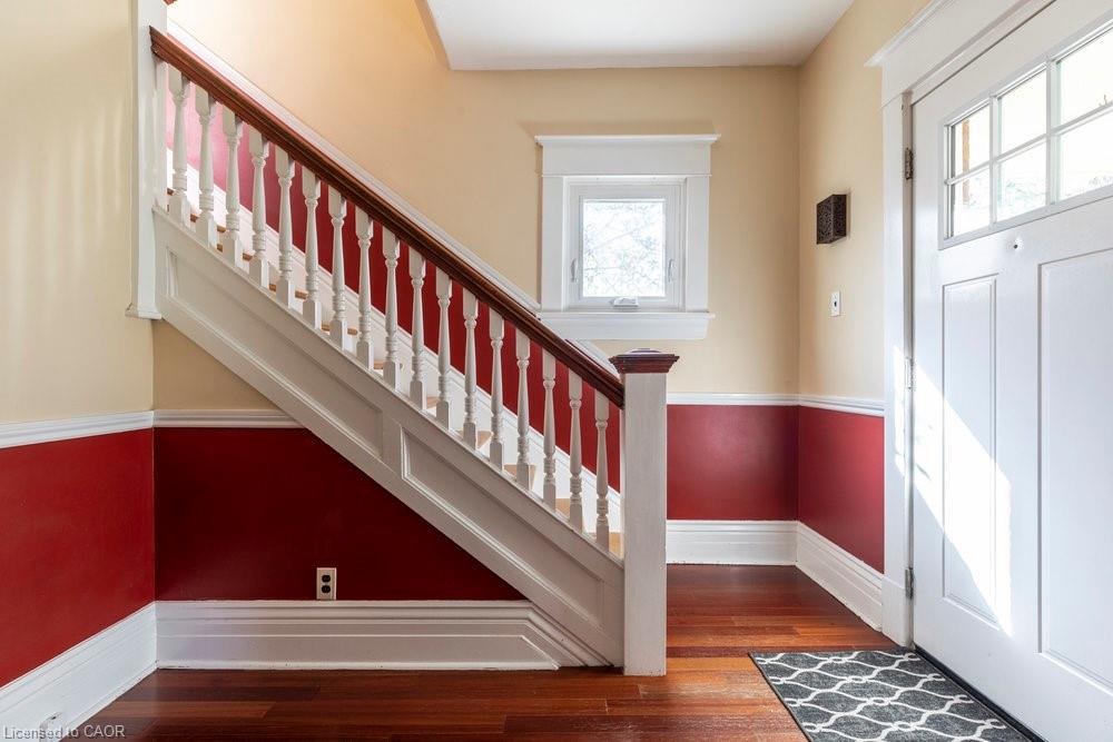 Nestled behind two lovely, mature evergreen trees lies a stately 2 1/2 storey, 3 bedroom, red brick century home. Beautifully finished throughout including a fabulous kitchen with heated floors and heated floors in both bathrooms! Continuous upgrades