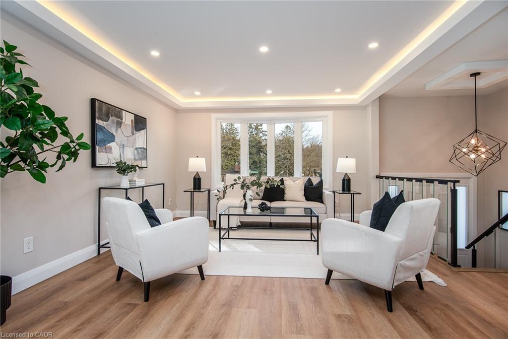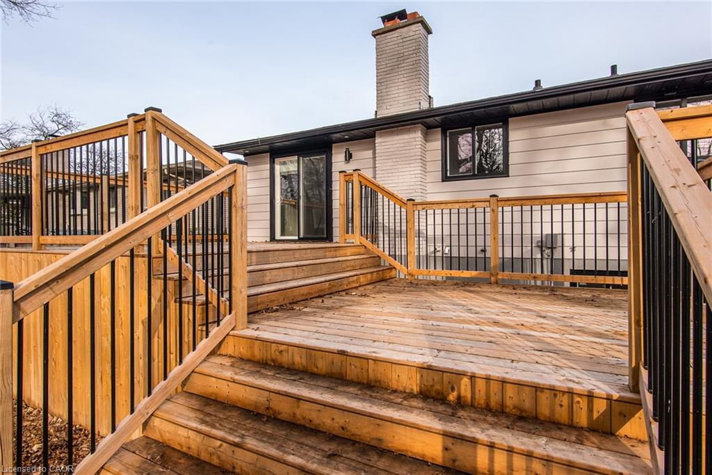 627 Glen Forrest – Fully Renovated Raised Bungalow with Exceptional Versatility! Located in one of the area’s most popular neighborhoods, this beautifully updated home is perfect for families, multi-family living, or investors alike. Enjoy the convenience of nearby schools, shopping, scenic trails, and more — just a 5-minute drive to the U of W and Wilfrid Laurier University, and only 2 minutes to the Expressway for effortless commuting. From the moment you arrive, the extensive exterior upgrades are evident. The home features a newly poured concrete driveway extending to the backyard, a 500 sq ft concrete back pad, and a stunning two-tier deck (approx. $20,000) ideal for entertaining. The aggregate stone porch with covered roof creates a welcoming entrance. Additional updates: newer windows (3 years old), new exterior paint, new front and patio doors, new garage door, new railings (inside and out – approx. $15,000), and pot lights enhancing both curb appeal and functionality. Bright, one-level living on the main floor. The fully renovated open-concept layout seamlessly connects the kitchen, living, and dining areas. The modern kitchen features a large island with quartz countertops, stone backsplash, and brand-new appliances (fridge, stove, dishwasher). New flooring, trim, doors, pot lights, and fresh paint throughout complete the contemporary feel. The main level includes three spacious bedrooms and a beautifully renovated full bathroom. The lower level benefits from large above-grade windows, allowing for abundant natural light. This level offers a generous rec room/living area, 2 additional bedrooms, a full bathroom, and a newly installed second kitchen — making it ideal for extended family, multi-generational living, or strong rental potential. Major mechanical upgrades include all new electrical wiring and panel, and a new furnace (only 2 months old). $150,000 in Total Updates! Must See!