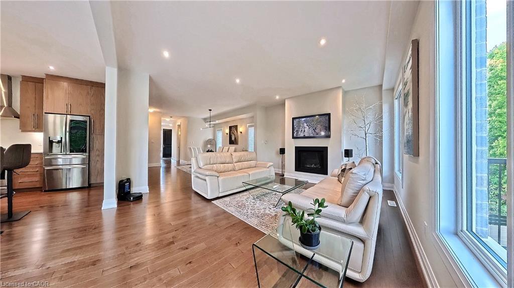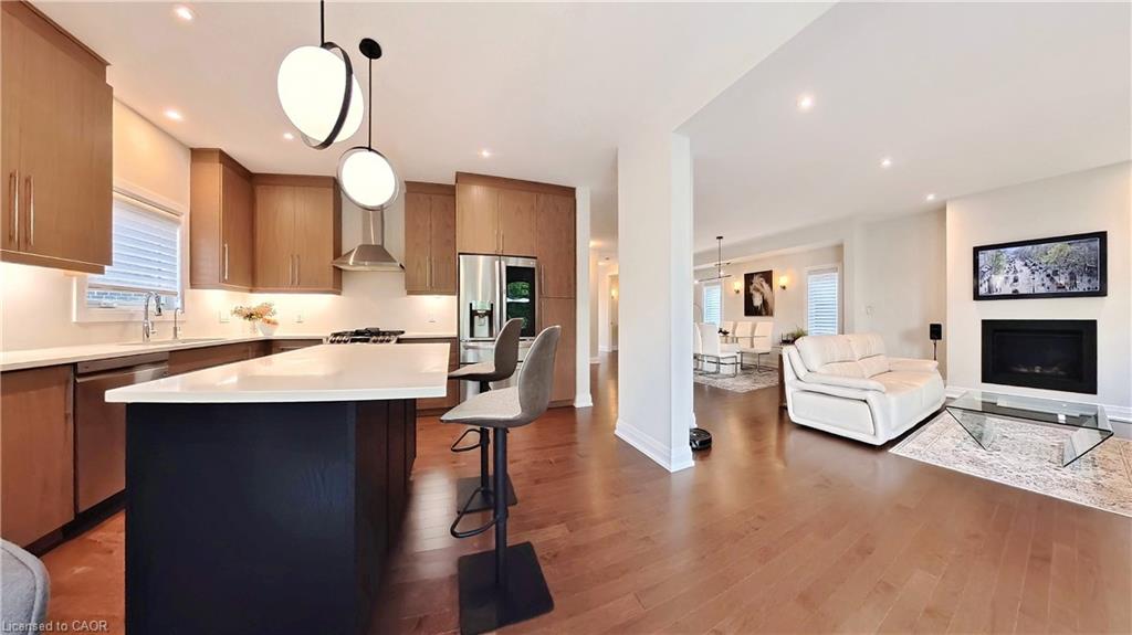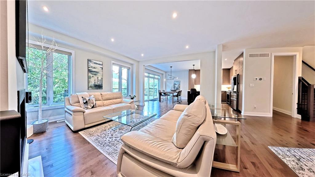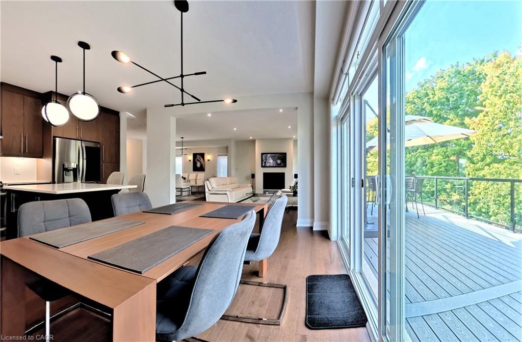 Once-in-a-decade opportunity in Kitchener's coveted Ormston at Doon South. This executive home delivers exceptional finishes, thoughtful upgrades, and an irreplaceable setting backing directly onto the Sussex Greenway and Ian Ormston Park natural area.Arrive to a triple-wide driveway. Inside, the open-concept main floor impresses with hardwood flooring on both levels, 9-ft ceilings throughout, and a gorgeous modern kitchen with a large island and bright eat-in dinette. The oversized sliding door leads to a showstopping ~$40K composite Corasite deck your personal retreat overlooking protected forest and greenway. Powder room, main floor laundry, and inside garage entry complete the level.Upstairs: a generous living room, four full bedrooms with real proportions, and a primary suite featuring a large walk-in closet and spa ensuite with soaker tub and glass shower - both overlooking the greenway.The walkout basement is a canvas of opportunity: 9-ft ceilings, large windows, 3-pc bath rough-in, kitchen sink rough-in, and a separate garage entrance. A dedicated concrete sidewalk runs along the side of the home to a private patio under the deck - ideal for a legal suite, nanny suite, or rental.Upgrades: ~$40K deck, ~$30K driveway/sidewalk/patio, $9K fence, ~$11K high-end appliances, reverse osmosis water system.Minutes to Hwy 401, Groh PS, Huron Heights SS, Conestoga College, Doon Valley Golf Course, and the Grand River trail network.Homes where architecture, upgrades, and nature align this perfectly don't come available often.