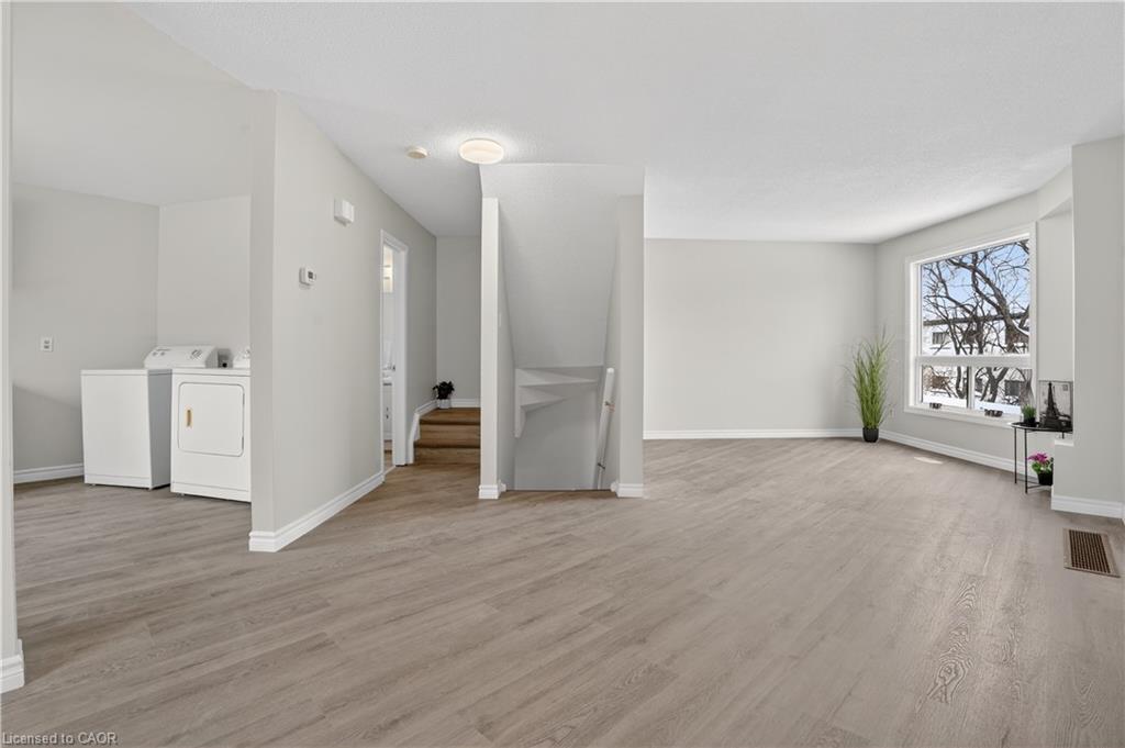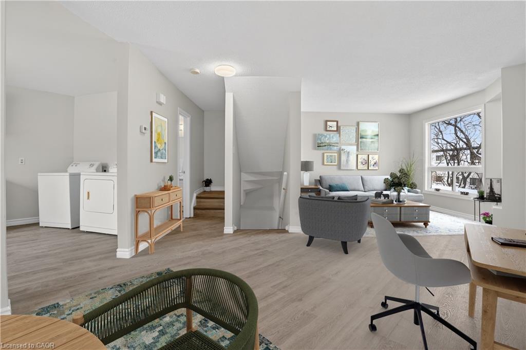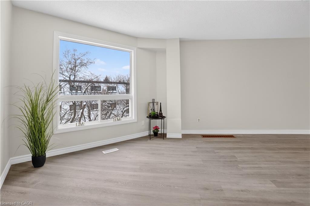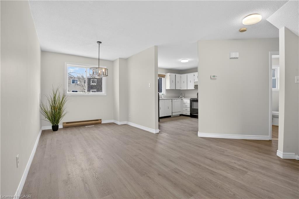 Step into homeownership with this spacious 3-bedroom, 1.5-bath townhouse condo, complete with a garage, in a central Kitchener location close to shopping, parks, and major commuter routes. Fresh paint, flooring, and modern light fixtures, this home also features a gas furnace and central A/C for year-round comfort. Offering an impressive 1,548 sq ft, the layout with plenty of room to grow. Enjoy your own private outdoor space, perfect for relaxing, gardening, or hosting summer BBQs. The family-friendly complex includes an on-site playground and swimming pool, adding even more lifestyle value. Parking is convenient with a private garage and driveway space, plus nearby visitor parking. Even better, condo maintenance covers major exterior elements like windows, doors, siding, and roof, making ownership simple and stress-free. Whether you're a first-time buyer, young family, or investor looking for a solid addition to your portfolio this is a fantastic opportunity to get Into the market