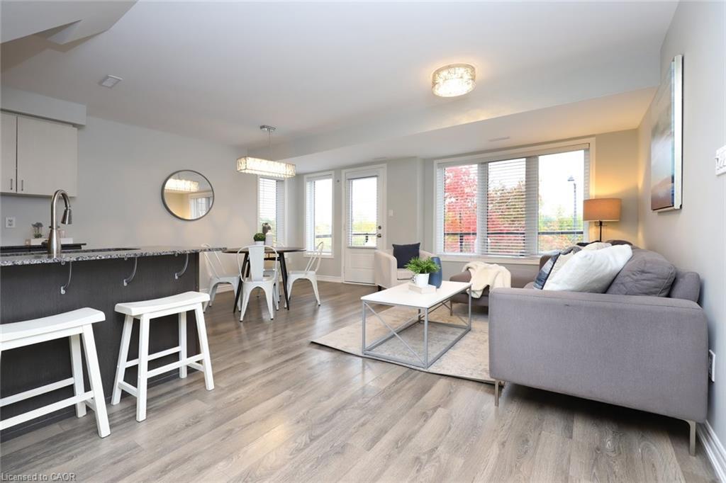 Stylish 3-Bedroom End Unit with 2 Parking Spots & Ravine Views - Move-In Ready! Fall in love with this bright and modern all-brick townhome in the desirable Wildflowers community! With two private balconies overlooking peaceful ravine views, this freshly updated and freshly painted end-unit offers the perfect blend of comfort, style and convenience. Enjoy cooking in the designer kitchen featuring granite counters, stainless steel appliances and built-in microwave. The brand new hardwood stairs and new luxury vinyl plank flooring throughout the entire upper level add a sleek, modern touch and easy-care finish. Upstairs, you'll find three spacious bedrooms and a full bathroom - ideal for families, professionals or anyone seeking extra space for a home office. The open-concept main level is perfect for entertaining or relaxing with a view. With very low condo fees ($292/month), two owned parking spots, and the option to rent out one of the parking spaces for additional income (a popular choice among residents), this home offers unbeatable flexibility and value. Located just minutes walk to RBJ Schlegel Park, where you'll find soccer fields, a multi-purpose turf sports field, cricket pitch, sports courts, playgrounds, a sand play area, splash pad, and outdoor fitness zone - plus nearby restaurants and shopping centres - this home truly checks every box for modern, active living. Freshly updated, beautifully bright, move-in ready and flexible with closing date - don't miss your chance to make this home yours!