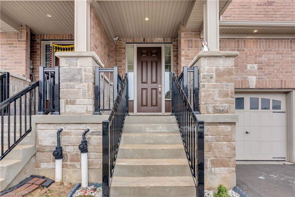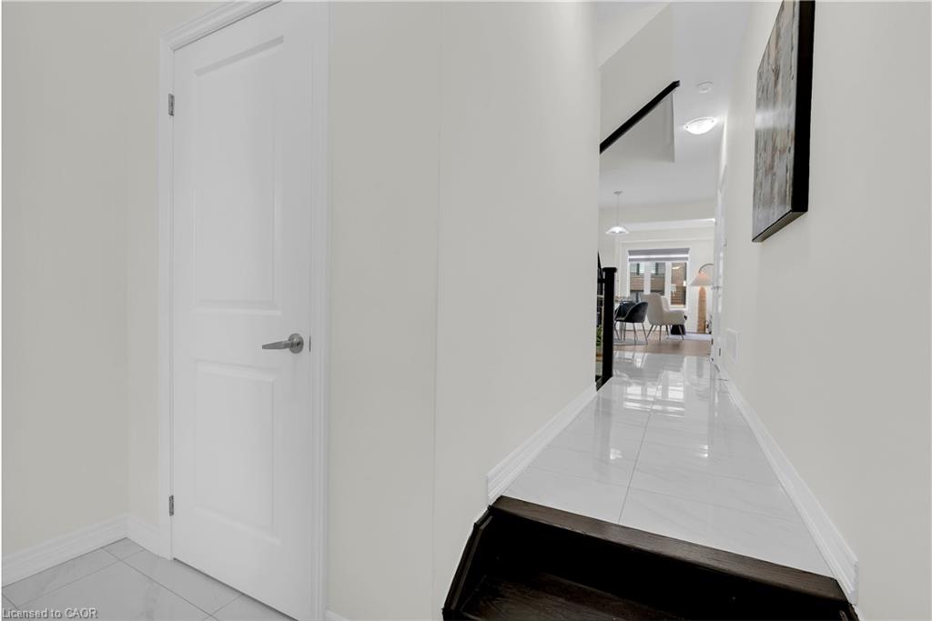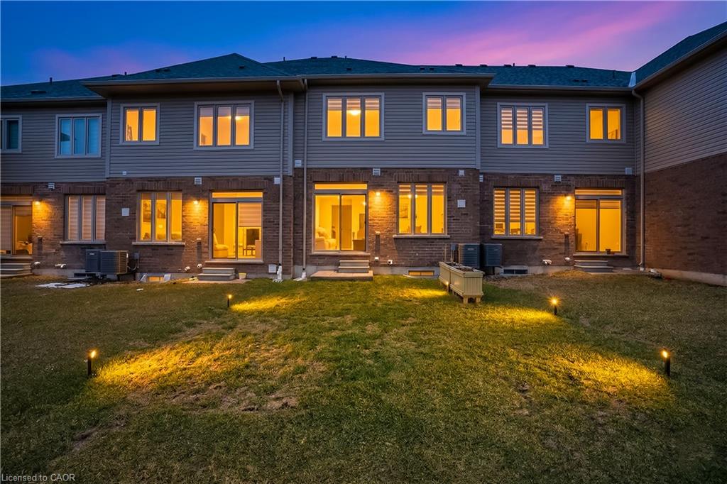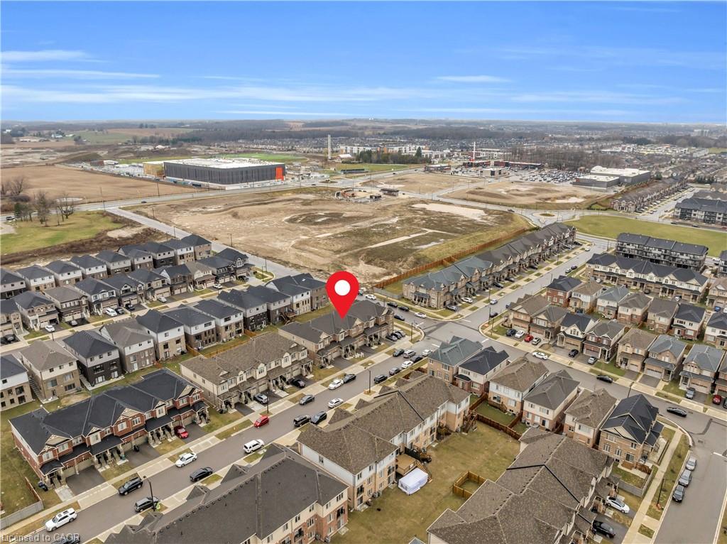 This beautifully maintained FREEHOLD townhouse, featuring luxury finishes constructed by renowned builder Heathwood, is located in one of Kitchener's most desirable, family-friendly neighbourhoods, just minutes from Highway 401, shopping, dining, and everyday conveniences. Featuring 3 bedrooms and 3+1 bathrooms, this home offers a fully finished basement, garage, and 9-ft ceilings on the main floor, along with modern finishes throughout. The bright open-concept main level seamlessly connects the living, dining, and kitchen areas, highlighted by large windows, upgraded lighting, and a cozy fireplace. The kitchen is equipped with white cabinetry, quartz countertops, stainless steel appliances, double sinks, and a large eat-in island, plus a convenient pantry. Additional storage is provided with coat closets at both the front entry and garage access. Hardwood stairs lead to the second level, featuring two spacious bedrooms with oversized closets, a full bathroom, and second-floor laundry. The primary suite includes a walk-in closet and a luxurious ensuite with double sinks, a soaker tub, and a glass stand-up shower. The finished basement offers versatile space ideal for a rec room, home office, or potential 4th bedroom, complete with high ceilings and a 3-piece bathroom. Additional features include an owned water softener, water purifier, and garage shelving for extra storage. Located close to top-rated schools, scenic trails, and the highly sought-after RBJ Schlegel Park, which offers sports fields, a cricket pitch, courts, playgrounds, splash pad, and an upcoming state-of-the-art indoor recreation facility, this home delivers exceptional lifestyle and convenience in a rapidly growing community.
