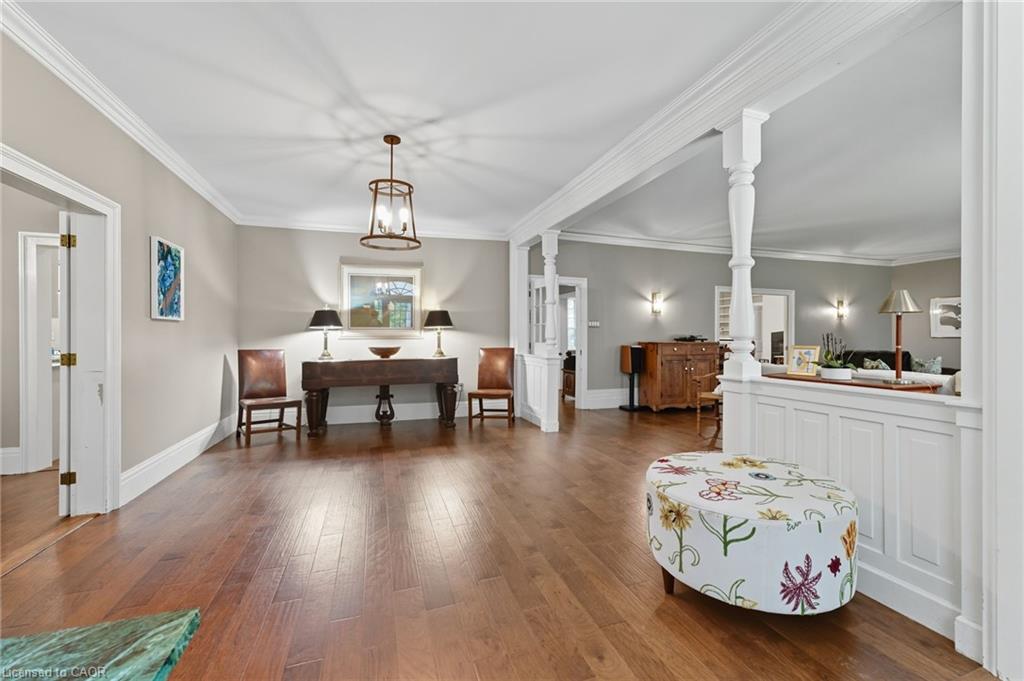 Discover a rare opportunity to own a designated heritage home in the heart of historic Blair Village. Originally constructed in 1832, this distinguished manor blends rich architectural history with thoughtful and tasteful modern restorations, completed in 2021.Spanning over 4,500 sq. ft. of finished living space, the home welcomes you with grand principal rooms, exquisite millwork, and timeless craftsmanship throughout. Designed for elegant living and effortless entertaining, the residence features 4+ bedrooms, each offering spacious proportions, abundant natural light, and classic heritage charm.A well-appointed butler's pantry with custom built-in cabinetry and a second dishwasher provides exceptional convenience for hosting and entertaining. This versatile space also offers the option to add a secondary laundry, making it as functional as it is beautiful.An unfinished two-level bonus area presents endless possibilities-whether envisioned as a private gym, theatre room, wine cellar, or a chic speakeasy, it's a rare opportunity to customize a part of this heritage estate to suit your lifestyle.The three-season screened sunroom off the primary bedroom creates a serene, breezy retreat, perfect for quiet morning coffees or summer evenings overlooking the grounds.Set on a stunning 2.4-acre property, the estate is graced by a river that gently flows through the land, adding to its natural beauty and privacy. A stone barn and original bakeshop further enhance the property's character and offer potential for creative use or future restoration.This exceptional home celebrates the grandeur of a bygone era, while embracing the comfort and elegance of modern living. Just minutes from city amenities, yet immersed in the tranquil charm of Blair Village, this is a landmark estate unlike any other and must be seen to be truly appreciated.