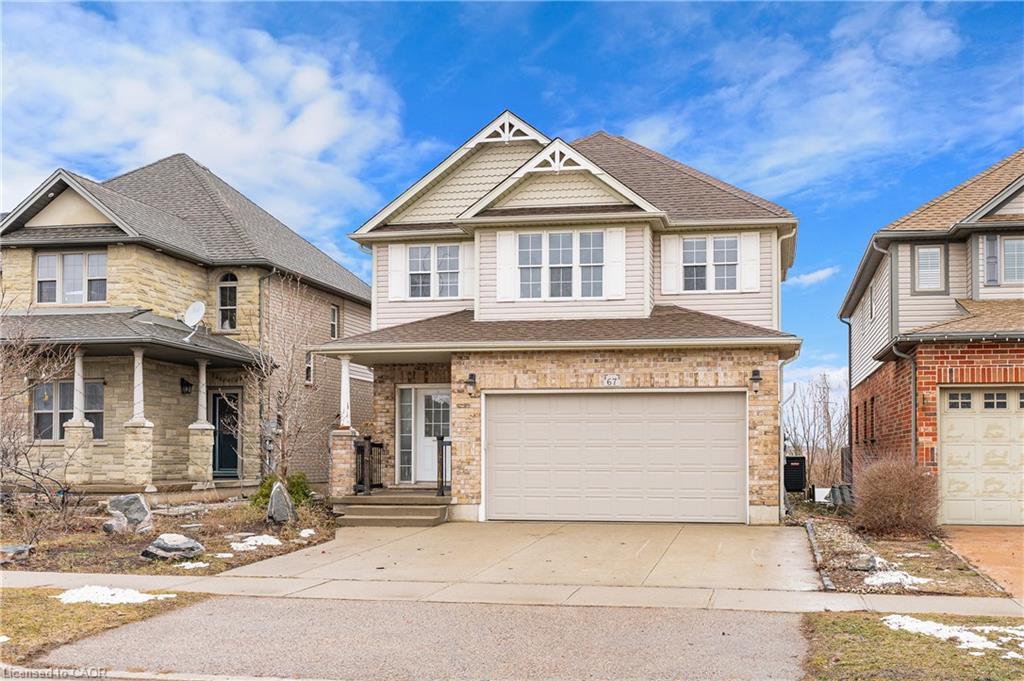 Welcome to 67 Maitland in Huron Park! RARE WALKOUT basement backing onto the Parkvale Park GREENBELT. Impressive multi-level home with open concept 4-Bedrooms, 4-Bathrooms, plus finished basement walk-out. Features include **impressive ceiling heights in the living room open to above with updated hand scraped hardwood, solid wood staircase, updated light fixtures and lots of lighting throughout. **The Kitchen includes a built-in island with storage and tons of additional kitchen cabinets, large dining area, and walk-out to huge private deck. Convenient main floor laundry. All appliances are included. **Primary bedroom is located on its own level for privacy and includes a walk-in closet and ensuite. **The spacious additional family room provides the perfect place to relax or entertain, with a walk-out to a stunning two-storey deck and lower patio—ideal for summer gatherings or quiet evenings outdoors backing onto a peaceful greenspace, offering privacy and a natural setting. **Updated concrete driveway and double garage. Roof was replaced in 2020. **Located just minutes from RBJ Schlegel Park, coffee shops, restaurants, and grocery stores. This home is perfect for families looking to enjoy outdoor amenities, parks, and a vibrant community atmosphere.