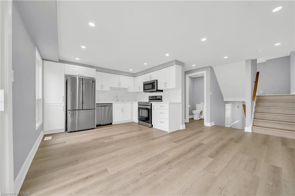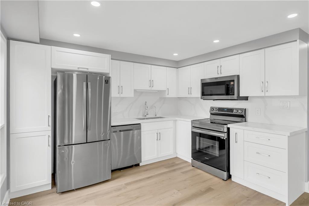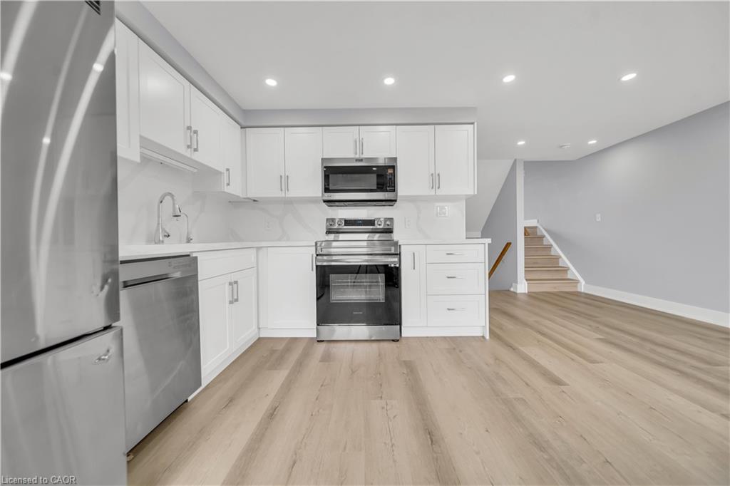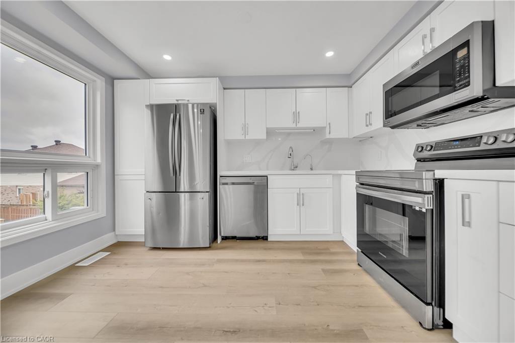 Welcome to 698 Activa Avenue, Kitchener – Move-In Ready Townhome in the Highly Desirable Williamsburg/Laurentian West Community. This beautifully maintained multi-level freehold townhome offers a bright, spacious layout with modern updates, perfect for first-time buyers, investors, or renters ready to step into ownership. Drive into this well maintained property offering 3 car parking: 2 Garage, 2 Driveway. Inside, you’ll find a freshly upgraded home featuring brand-new flooring (2025), pot lights, and a carpet-free interior. The formal living room is ideal for family gatherings or relaxing evenings, while the finished family room provides versatile space for a home office, playroom, or entertainment area. The renovated kitchen boasts quartz countertops, stainless steel appliances, and ample cabinetry, with main-floor laundry and a convenient powder room completing this level. Upstairs, there are three generously sized bedrooms, including a large primary suite, and a stylishly updated 4-piece bathroom. Downstairs is fully finished basement adds even more living space, featuring a spacious rec room, a 3-piece bathroom, and plenty of storage. Important updates include a new roof (2018), furnace (2023), and AC (2023), ensuring peace of mind for years to come. Step outside to enjoy the spacious deck, perfect for morning coffee or summer BBQs, overlooking a fully fenced backyard—a safe and private retreat for children and pets and ideal for hosting parties or fun summer activities. Situated in one of Kitchener’s most family-friendly and well-connected neighborhoods, this home is within walking distance to excellent schools, parks, trails, shopping, and public transit. With quick access to Highway 7/8, commuting across the city or to nearby areas is fast and convenient. This turnkey home is all ready for you to Move-in. Don’t miss your chance—schedule your private showing today!
