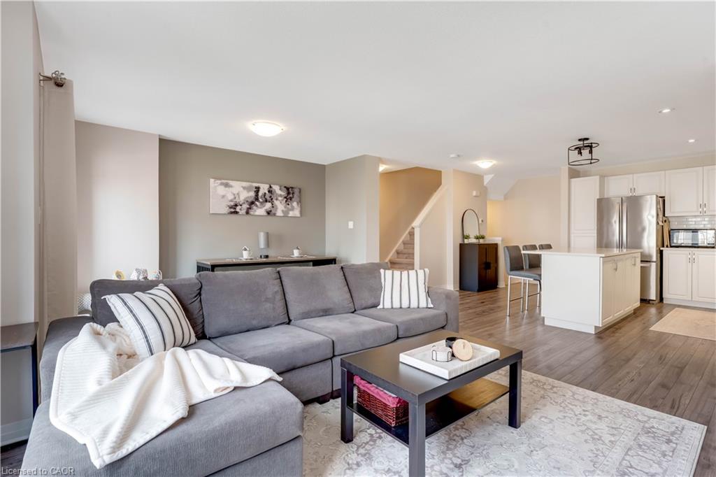Welcome to 115 South Creek Drive, Unit 6C in Kitchener’s Doon South Gem. Presenting a rare opportunity to own a beautifully maintained 2-bedroom, 2.5-bathroom, stylish 3-storey residence townhouse condo with garage parking and low condo fees, perfectly situated in the highly coveted Doon South neighborhood, Ideal for first-time homebuyers, downsizers or families. Step inside and experience a thoughtfully planned layout where natural light fills every room, creating a warm and inviting atmosphere. The main floor boasts an open-concept design, seamlessly connecting the gourmet kitchen, dining area and living space. The kitchen is equipped with contemporary finishes, quartz countertops and soft cabinets, making it a chef’s dream. The living area flows effortlessly to a private balcony, perfect for enjoying your morning coffee or evening relaxation. This home features professionally cleaned Carpet. Upstairs, there are two generously sized bedrooms, including a primary suite with a private ensuite, offering comfort and privacy. The bathrooms throughout are designed with modern fixtures, focusing on both style and functionality. The upper level also includes convenient laundry, adding a practical touch to everyday living. This home offers two dedicated parking spaces: one in the garage and one in the driveway. along with ample visitor parking, ensuring convenience for both residents and guests. The garage is equipped with an EV charger outlet, ideal for electric vehicle owners or future-proofing your home. Location is second to none: just steps from Groh Public School, minutes to Conestoga College, and surrounded by parks, scenic walking trails, and recreational amenities. Quick access to Highway 401 makes commuting effortless. Whether you’re looking to start your homeownership journey, downsize or invest in a sought-after area, Don’t miss this rare opportunity, schedule your private showing today and experience the lifestyle this beautiful house offers.
