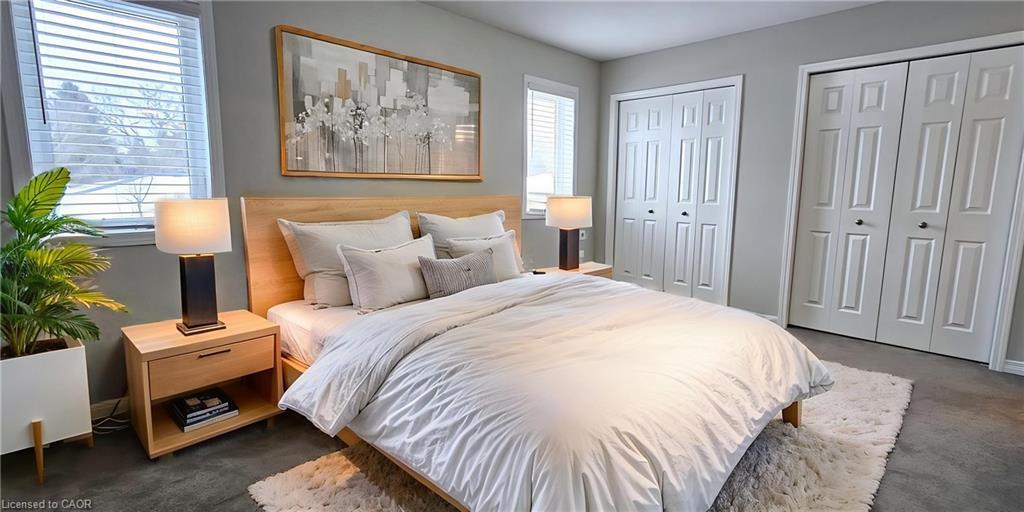 SPACIOUS 3-BEDROOM TOWNHOME IN PRIME DOON LOCATION — Available Immediately. Welcome to this stunning townhome nestled in the highly sought-after Doon neighbourhood. Featuring a charming pillared entrance, modern design elements, and beautifully maintained gardens, this residence is set within a well-established community and offers over 1,400 sq. ft. of comfortable living space. Inside, you’ll find 3 generously sized bedrooms and 2.5 stylish bathrooms, including a private primary bedroom suite. The layout is both functional and inviting, ideal for everyday living. Visitor parking is conveniently located nearby, with additional parking available for rent. Perfectly positioned close to top-rated schools, Conestoga College, scenic walking trails, and a wide range of local amenities, this home also offers quick 2-minute access to Highway 401, making commuting a breeze. Please note: heat, hydro, gas, water, and hot water heater rental are the responsibility of the tenant(s). All applicants must provide a full credit check, including credit score and history. Virtually Staged.