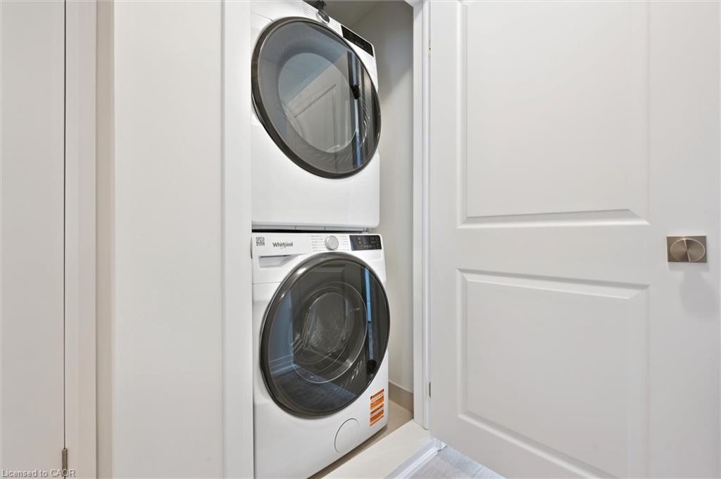FIRST MONTH RENT IS FREE WHEN YOU SIGN A 13-MONTH LEASE! TWO PARKING SPOTS AVAILABLE. New tenants receive exclusive discounts on Rogers TV, internet and mobile services. BRAND NEW ENERGY STAR® CERTIFIED two and three bedroom stacked townhomes near Sunrise Shopping Centre with flexible move-in. Reserve your favourite unit today and move in anytime from now through July. Welcome to THE SIMCOE, a 2 bed, 2 full bath suite with high ceilings, premium finishes, and a bright open concept layout. The new kitchen boast quartz countertops, subway tile backsplash, full-size stainless steel appliances, and an oversized island with breakfast bar seating. Enjoy the convenience of in-suite laundry and central air conditioning/heat for year round comfort. Relax and unwind from your own private balcony featuring beautiful views of the pond and countryside. Just steps away, Trussler Woods features peaceful trails—perfect for walking, jogging, and enjoying the outdoors. EV chargers and visitor parking available. Pet-friendly community. Located in a designated school bus zone, offering added convenience for families. Enjoy quick access to Highways 7/8 and 401. Actual units may vary in layout; interior finishes are consistent. Some photos may be virtually staged. Tenants pay utilities. Landlord is responsible for furnace filter replacements and water softener maintenance. Book a tour to explore all available suites!