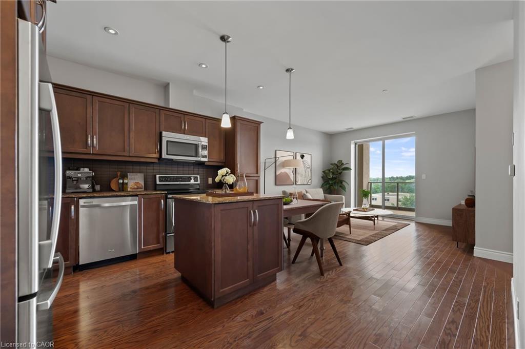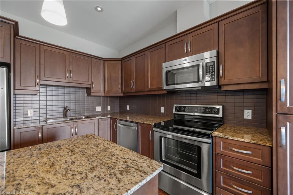 Welcome to this beautifully designed 2 bedroom, 2 bathroom condo that features a spacious eat-in kitchen perfect for both everyday living and entertaining. Boasting an abundance of cabinet space, sleek quartz countertops, and stainless steel appliances, this kitchen is as functional as it is stylish. The open-concept layout flows seamlessly into the bright and inviting living room, where patio doors lead out to your private balcony— ideal for morning coffee or evening relaxation. Both bedrooms have large windows, allowing in lots of natural light and the main bathroom is complete with a walk-in shower. The large primary bedroom is a true retreat, featuring a convenient walk-through closet and a luxurious 5-piece ensuite complete with a double vanity, soaker tub, and separate shower. The amenities in the Westmount Grand include a rooftop terrace complete with BBQ's, a party room, a library/piano room, a large gym with saunas, and a bike room. Conveniently located beside the mosque (Muslim Society of Waterloo Wellington Counties) and close to restaurants, shops, parks, all amenities, and universities. Don’t miss your chance