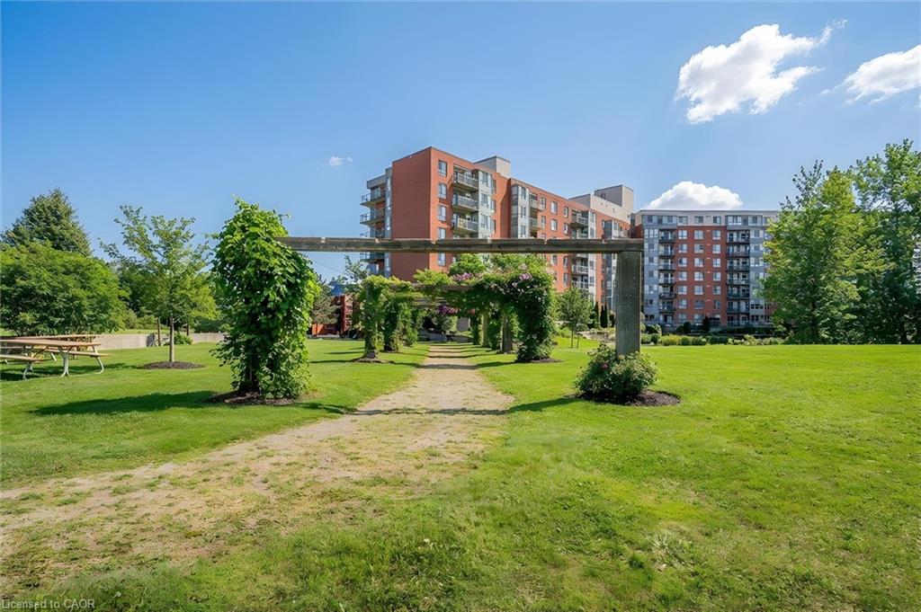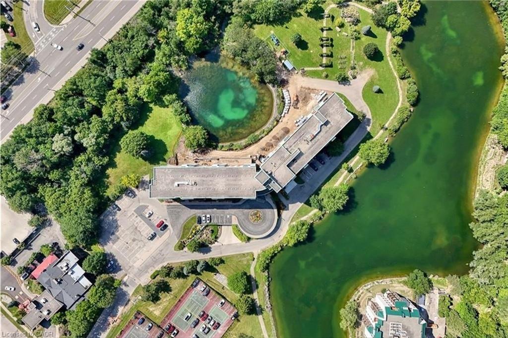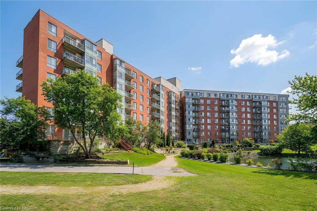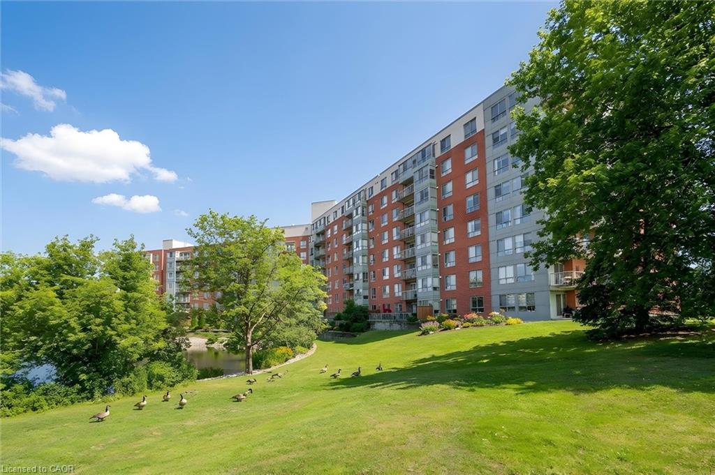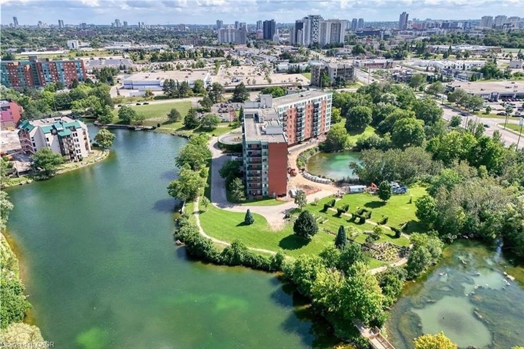 Beautifully maintained condominium located in a quiet and highly desirable area of North Waterloo. This spacious two-bedroom suite features southeast-facing windows overlooking Four Wells Lake/pond and lush green space, offering picturesque views and an abundance of natural light throughout the day. The open-concept living and dining area is bright and inviting, with sliding doors leading to a generously sized private balcony—perfect for relaxing or enjoying the scenic surroundings. The well-appointed kitchen offers ample cabinetry and is conveniently situated beside a sun-filled breakfast area with large windows. The unit includes two generously sized bedrooms and two beautifully renovated full bathrooms, both featuring in-floor heating for added comfort. Additional highlights include in-suite laundry and laminate flooring throughout, creating a clean and modern living space. This unit comes complete with one underground parking space and an exclusive-use storage locker. Residents enjoy excellent building amenities, including a party room with kitchen, guest suite, library, bike storage, intercom-controlled entry, ample visitor parking, and a rooftop patio with gas BBQ—perfect for social gatherings and relaxation. Blue Springs is surrounded by an exceptional network of scenic walking and cycling trails, including Forwell Trail, located just steps from the building, connecting you to miles of peaceful forested paths. Ideally located close to all amenities, including the LRT, public transit, Conestoga Mall, supermarkets, restaurants, and the University of Waterloo, with quick access to major highways for convenient commuting.