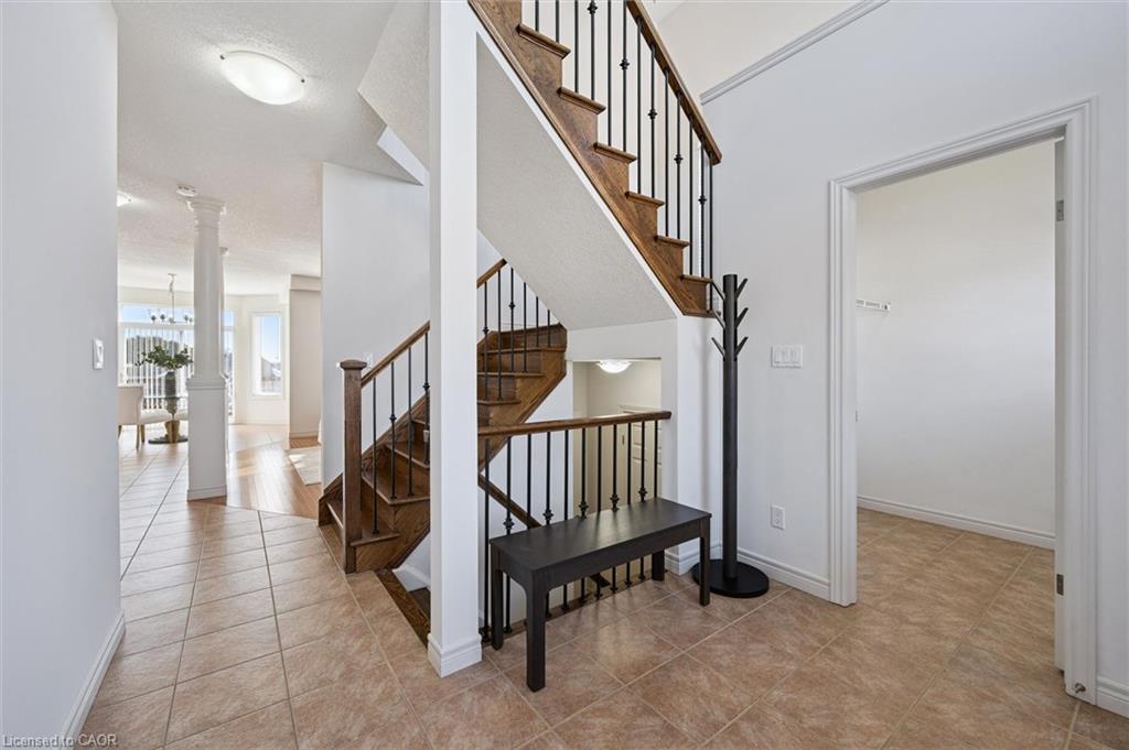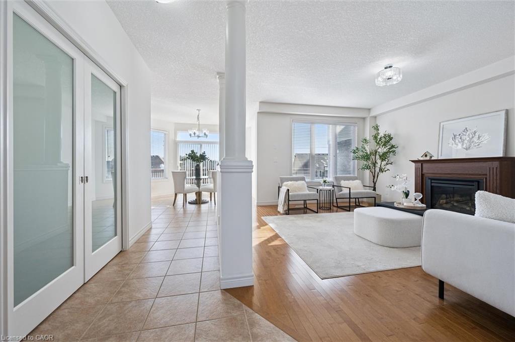 Nestled in one of Waterloo’s most sought-after neighbourhoods, this distinguished home in Conservation Meadows offers the perfect blend of elegance, comfort, and convenience. Situated on a quiet cul-de-sac, the property is thoughtfully maintained and beautifully appointed, showcasing exceptional curb appeal with its attractive exterior, double-car garage, concrete driveway accommodating four vehicles, and no sidewalk. Step inside to a bright and welcoming foyer featuring a soaring double-height ceiling and a walk-in closet. The main floor boasts 9-foot ceilings and a spacious, sun-filled living room with south-facing windows and a cozy gas fireplace. The generously sized kitchen is designed for both functionality and style, featuring abundant cabinetry, stainless steel appliances, and stunning quartz countertops. It opens seamlessly to the dining area, which overlooks clear, open views. Step outside to a large deck with stairs leading to an expansive concrete patio and a fully fenced, well-maintained backyard complete with manicured lawns and a solidly built shed. A versatile main-floor room with double doors offers flexibility as a private family room, home office, or formal dining room. A convenient powder room completes the main level. Upstairs, the primary bedroom is bathed in natural light from beautiful bay windows and features a walk-in closet and a 5-piece ensuite. Two additional well-sized bedrooms share a 4-piece bathroom. A second-floor laundry set adds everyday convenience. The fully finished walk-out basement significantly expands the living space, offering a large recreation room with a wet bar and dining area, a spacious bedroom with a study area and walk-in closet, a full 3-piece bathroom, an additional laundry set, and a cold room. Located just minutes from top-rated schools, shopping plazas, HWY 85, and the public library — walking distance to Conservation Park — this exceptional property offers more than just a home; it offers a lifestyle.