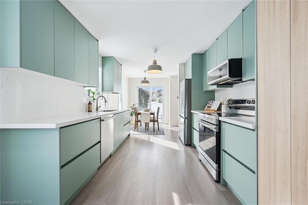 Where modern updates meet everyday functionality, this beautifully maintained home delivers stylish, versatile living spaces and quality finishes throughout. Nestled in the highly sought-after Lakeshore neighbourhood, this thoughtfully renovated and truly move-in ready home offers over 1,730 sq ft of finished living space designed for modern comfort. The open-concept main floor is anchored by a stunning, newly renovated, kitchen featuring custom cabinetry, quartz countertops, and brand-new premium appliances, creating an inviting space for both everyday living and effortless entertaining. Upstairs, you’ll find two comfortable bedrooms and an updated 3-piece bath. The third bedroom is thoughtfully situated on the bright ground level of this multi-level layout, just a few steps from the main living area - creating a versatile space that could function beautifully as a private primary suite. With a full bathroom and laundry conveniently located on the same level, it provides flexibility and ease for a variety of living arrangements. Extensive recent improvements include new flooring, fresh paint, updated trim and baseboards, a rebuilt main bathroom with upgraded plumbing and insulation, and modern built-in closets in all bedrooms. Outside, enjoy a generous lot with professional low-maintenance landscaping, a new concrete porch, and an oversized driveway with parking for up to five vehicles. Major mechanical updates include roof (2012) and furnace/AC (2015), offering added peace of mind. Located in a family-friendly neighbourhood within walking distance to Northlake Woods Public School and just minutes from Laurel Creek Conservation Area, St. Jacobs Market, parks, trails, and the University of Waterloo, this home offers an exceptional balance of comfort, convenience, and lifestyle. A turnkey opportunity in one of Waterloo’s most desirable communities, simply move in and enjoy.