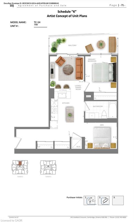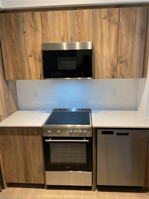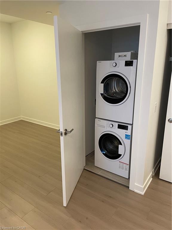 Underground Parking + Storage Locker with this One Bedroom plus Den unit with over-sized balcony at the new Station Park Union Tower C. Great views of Waterloo Uptown neighbourhoods. Work/study/play with spacious Den or create a guest bedroom with room for a queen-sized bed. 668 Square Feet featuring gourmet kitchen with SS fridge, stove and dishwasher, plus quartz countertops with breakfast bar overhang, extra lighting, and contemporary tile backsplash. You will enjoy high ceilings, low maintenance flooring, modern bathroom vanity, walk-in glass shower with magnetic seal door. Energy-efficient heating/cooling, appliances, lighting, full height windows + 2 sliding balcony doors. Tech includes unit entry smart lock with mobile features; Bell Fibe internet (included); Exterior/interior common area cameras. Amenity-rich 3 building complex offers tenant access to: Indoor lounge with bar & entertainment area; Dual-bowling lanes; Private bookable dining area with kitchen; Outdoor bookable private cabanas; Outdoor fireplace with Muskoka chairs; Outdoor gas BBQs with bookable private dining areas; Fitness centre, Peloton studio, Yoga & Pilates; Swim spa/hot tub. Functional amenities include: Parcel room; Dog washing stations; and Bicycle storage. Tower C has a large infra-red sauna, showers and change rooms, plus rooftop terrace, and walking track. Automated underground parking garage with 1 Space also gives covered connected access to all 3 buildings’ amenities. Walk to Google, Deloitte, KPMG, D2L, Communitech, McMaster School of Medicine, U of W School of Pharmacy, Go Train Station, Grand River and St. Mary’s Hospitals, Victoria Park, coffee shops, restaurants and stores. Steps away from ION LRT (nearby Central Station to Conestoga or Fairview Mall, Universities and points between), GRT bus stops, and future transit hub. Heat and internet included. Tenant pays hydro and water. We do background and credit checks. No Smoking unit. No Pets preferred. Jan. 15 or after.