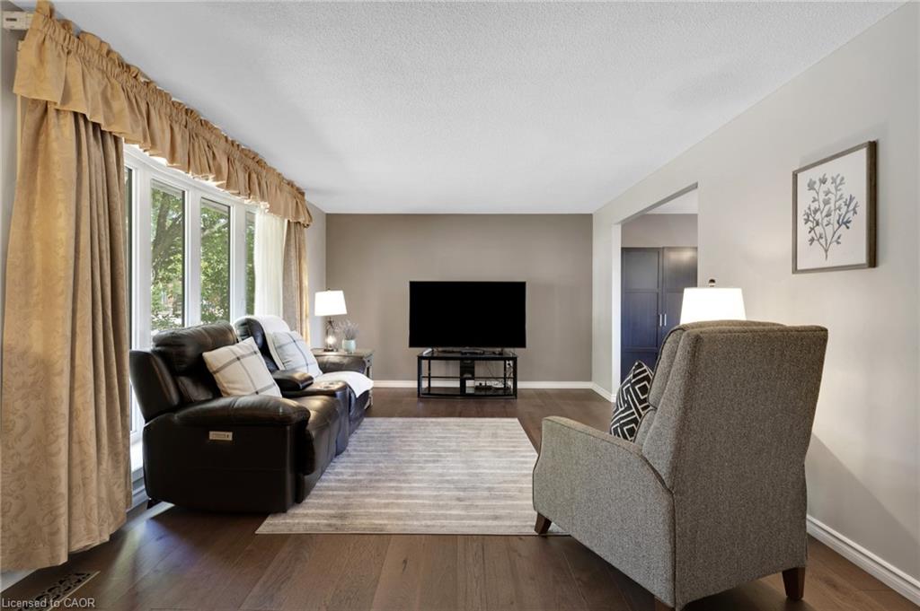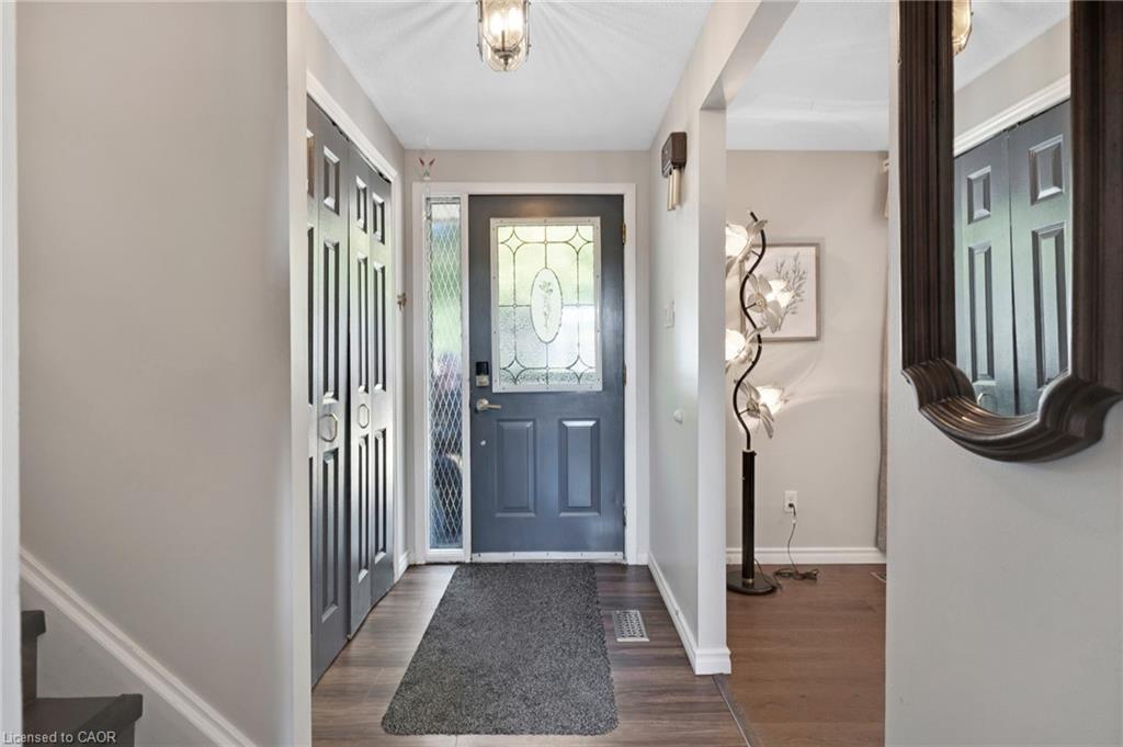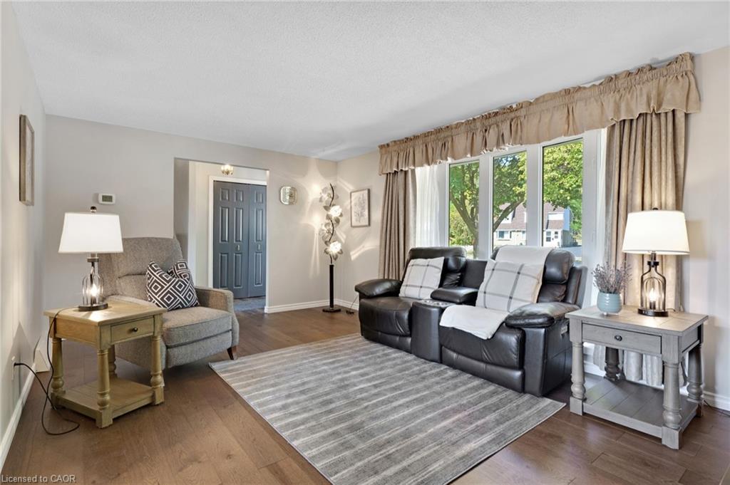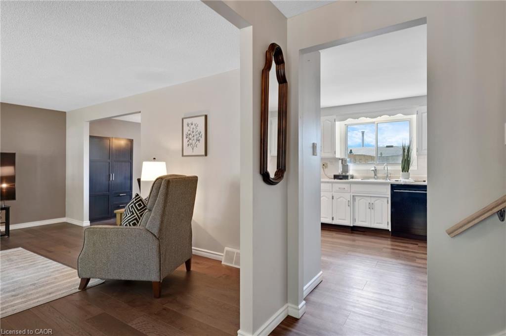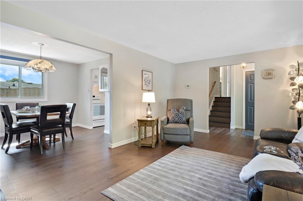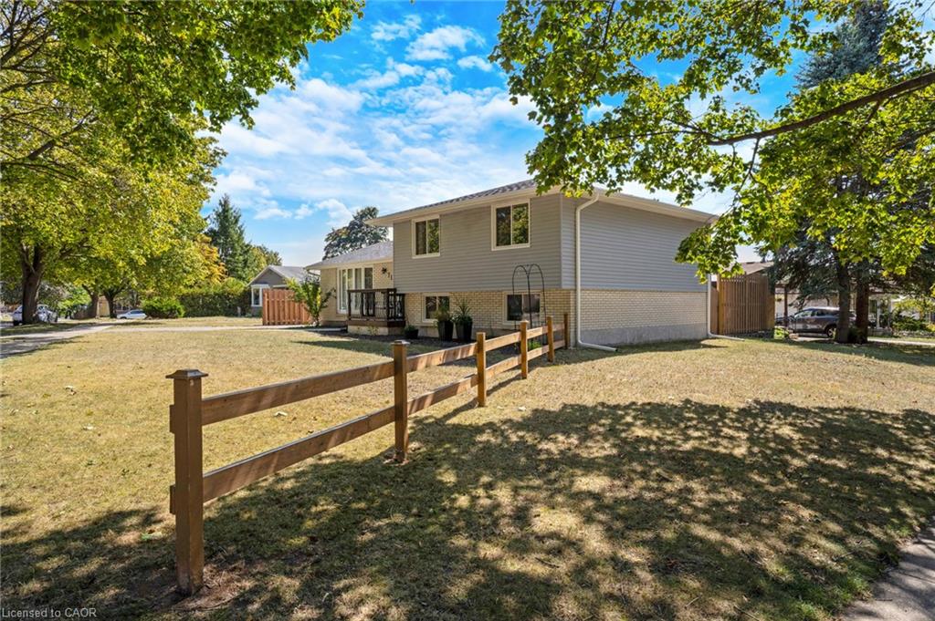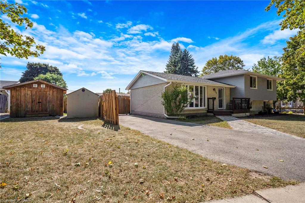 This charming 3-bedroom, 1 ½-bathroom home sits on a large corner lot & shows true pride of ownership with many updates both inside and out. The main floor features a bright living room with a large window & a dining room, both with engineered hardwood flooring. The kitchen has a breakfast nook, updated cupboard hardware, & the fridge & stove are only a year old! Upstairs, the engineered hardwood flooring continues throughout the hall and bedrooms. The updated 3-piece main bathroom includes a tiled shower, & all three bedrooms are a good size, with the primary bedroom offering two closets. A large storage area at the top of the stairs adds extra convenience. The lower level includes a spacious family room with newer windows & a utility room with laundry, a sink, & plenty of storage space. The basement is finished with a rec room that has a bar, a powder room with space to add a shower, & a separate storage room. Outside, the fully fenced backyard is perfect for relaxing or entertaining, with a stamped concrete patio, & a gazebo. There are 2 sheds in the side yard, one of which could be used as a workshop with power & a wood stove. Located close to Chicopee Ski Hill, Fairview Park Mall, & with easy access to Highway 401, this home is in a convenient & family-friendly neighbourhood with parks, trails, & amenities nearby.