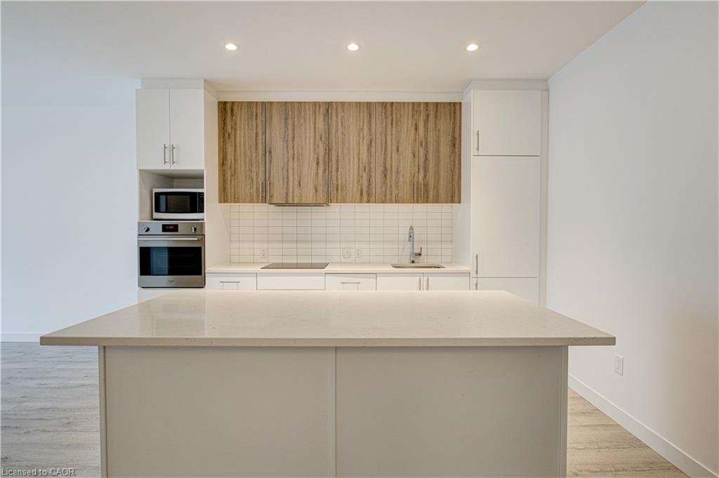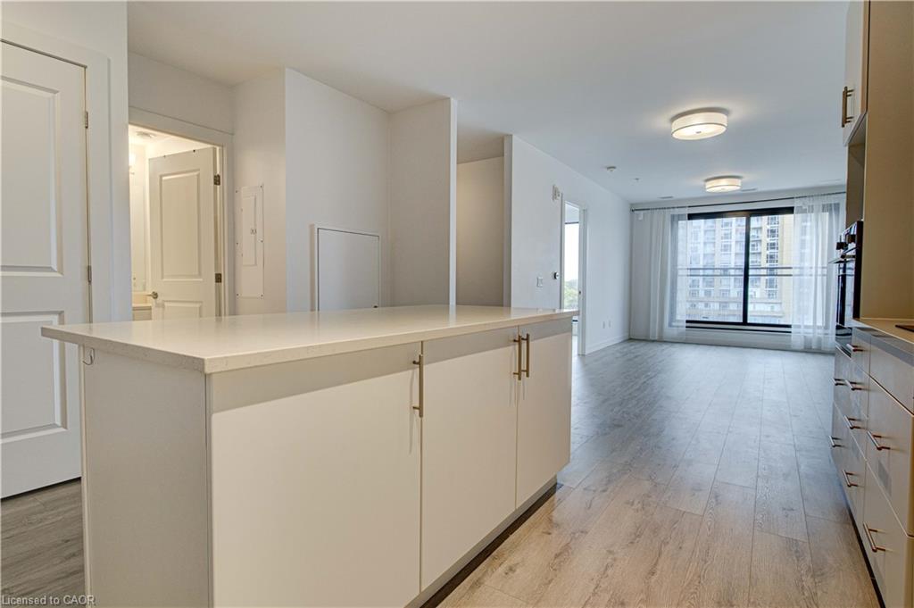 LUXURY UPTOWN WATERLOO ONE BEDROOM + DEN CONDO AVAILABLE IN THE EXCLUSIVE CIRCA 1877. The building amenities of this luxury condo include a ground-floor fine dining restaurant, 6th floor saltwater pool, cabanas, BBQs, fire tables, fitness & yoga studios, co-working space, and much more. This modern and bright unit boasts 10 ft ceilings, high-end finishes and a spacious floor plan. The sleek kitchen features beautiful quartz countertops and backsplash, low profile European style appliances, and an oversized island with plenty of storage and is ideal for food prep, entertaining, and eating meals. The light-filled and large open concept living/dining room offers floor-to-ceiling windows with a Juliet balcony, and space for your sofa AND dining table. Just off the living room you'll find the large bedroom with city views and custom built closets. The hidden gem of this unit is the den; ideal as an at-home office or more closet/storage. The must-have in-suite laundry and modern four-piece bath complete this beautiful and practical condo. One storage locker is included. Unit 710 is located in the Bauer District of Uptown Waterloo, near shopping, cafes, restaurants, and major employers like Google, Sun Life Financial, the Regional and City offices, and the Grand River Hospital. Circa 1877 is located just steps from a LRT station, making it quick and easy to travel through the city without a car. This is a unit you won't want to miss! Book your showing today!