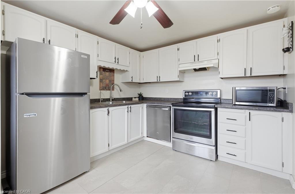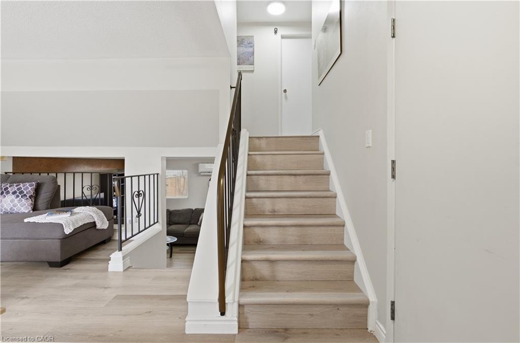 Fully maintained and well kept FREEHOLD Townhouse in Cambridge! No POTL or Condo fees. Ideal for first-time buyers, downsizers or investors. This beautiful townhouse in the heart of Preston Heights offers a spacious, functional layout with character and charm. The main level features a big and bright living room and lower ground floor offers separate Family room space along with dining area, and kitchen -- perfect for everyday living and entertaining. Upstairs features a 4-piece bath and three well-sized bedrooms, including a cozy primary retreat. The finished basement adds a large rec room and utility space, offering storage. Enjoy a beautiful deck in the backyard.New metal roof, gutters, soffit and downspout(July 2025).New flooring for entire house (June 2025).Full bathroom renovation (sept. 2024).New kitchen appliances (December 2025) .New Water heater OWNED (Feb 2025) and 2 New A/C (Cooling and Heating) (Aug. 2024). New water softener OWNED (Dec. 2023).All sides new fence (July 2021).New garage door ( Feb 2021).Located just minutes from Costco, Highways 8 & 401, and walking distance to Conestoga College, schools, transit, and the new outdoor soccer complex. Book your private showing today!