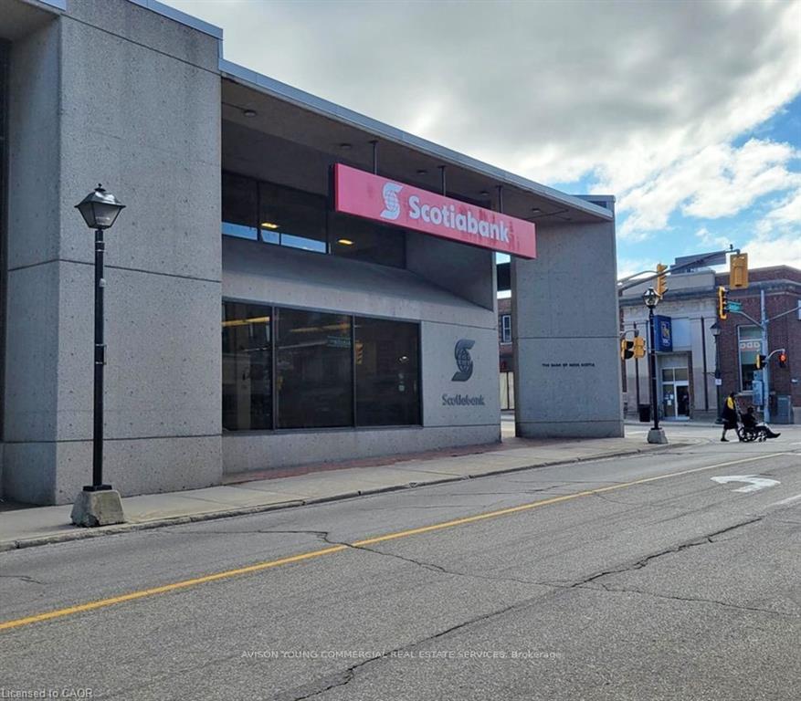 High-Exposure Corner Retail Space for Lease - 5,500 sq ft + 5,282 (Basement rent is included in rent no additional rent of basement) sq ft Basement .Situated on the prominent corner of Ainslie Street North and Main Street, this exceptional retail space offers outstanding visibility in one of Cambridge's most active commercial areas. The main level features 5,500 sq ft of open layout, previously occupied by Scotiabank, making it ideal for financial institutions, professional services, or any business requiring a high-profile presence. The expansive 5,282 sq ft basement includes a large staff kitchen, washrooms, and ample storage areas-perfect for operational support or additional workspace. Surrounded by multiple municipal parking lots, the location offers convenience for customers and staff. The zoning allows for a wide variety of commercial uses, providing endless possibilities for future tenants. This is an excellent opportunity for businesses seeking a prime, corner location with existing income potential and a functional bank setup already in place. Endless possibilities would be ideal for office or retail space.