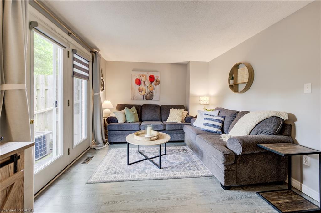Summer is coming, and your PRIVATE YARD is calling! Welcome to Unit 73 - 180 Marksam Rd., perfect for Downsizers, First Time Buyers, or Investors. Tucked away in the quiet, friendly, and beautifully maintained Sugar Bush Valley complex, your new home is in one of West Willow Woods most desirable locations. A bright and welcoming foyer leads into the spacious kitchen featuring a bay window, ample cabinetry, and a handy island with seating for four, perfect for casual meals or entertaining. The sun-filled living room beyond, opens directly to your private, fenced, backyard oasis, with a deck, a peaceful retreat ideal for relaxing or hosting a summer BBQ. Enjoy easy access to even more lush greenspace, through the handy gate at the back of the yard. Upstairs, you will find two great bedrooms with hardwood floors. The primary bedroom window overlooks a beautiful mature tree, for a tranquil start to the day. The main bathroom has been updated with a contemporary touch. Downstairs, the finished basement, complete with another full bath, provides even more flexible living space, ideal for a home office, guest space, home gym, or cozy media room. Additional highlights of your new home, include Parking right at your front door; Neutral, soothing decor throughout; Close proximity to the Hanlon Expressway, Linamar, and Conestoga College, and Easy access to University of Guelph, Public Transit, nearby Parks, Costco, and amenities such as Grocery Stores and the Movie Theatre. This home offers comfort, convenience, and community all in one. Book your showing today, this one is truly special!