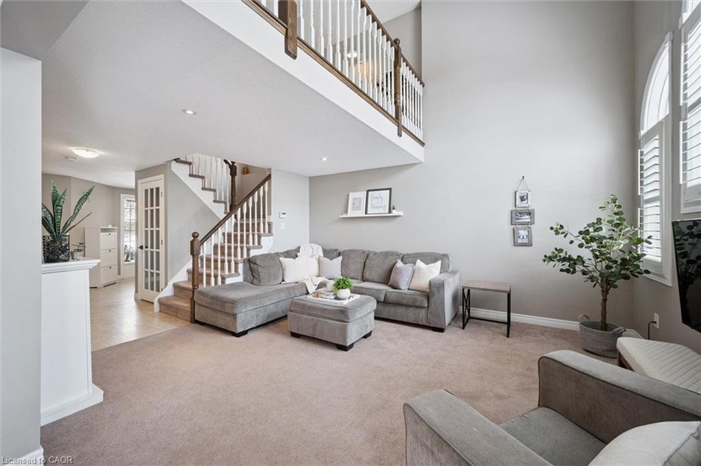 WELCOME TO YOUR NEW HOME! As you head to the front door you'll already be appreciating the double car garage and driveway, and the newer roof. Entering the spacious foyer you'll be struck by how bright the home is. The open concept and large 2 story cathedral window add to the spaciousness, and the California shutters add to the function. A necessary front hall closet and 2 piece bathroom add to the function of the main floor. The updated kitchen offers newer countertops, handles, appliances, and handles. You'll love the kitchen island overlooking the large dining space. The eat-in area has a sliding patio door walking out to the backyard. The living room being open to the dining area offers great entertaining function. Upstairs you'll notice the brightness continues as you see the upper loft with juliette balcony view of the living room. It offers a great space for a reading nook, office, or kids play area. The upstairs has 3 spacious bedrooms, and 2 full bathrooms. The primary bedroom is complete with a walk-in closet and 4 piece ensuite. Downstairs the space continues with a completed rec room. The backyard is partially fenced (enclosed if considering the neighbour's fences) and offers a deck area perfect for relaxing/entertaining. All of this on a quiet street in a neigbhourhood with some of the best schools in Waterloo. Book your private viewing today!