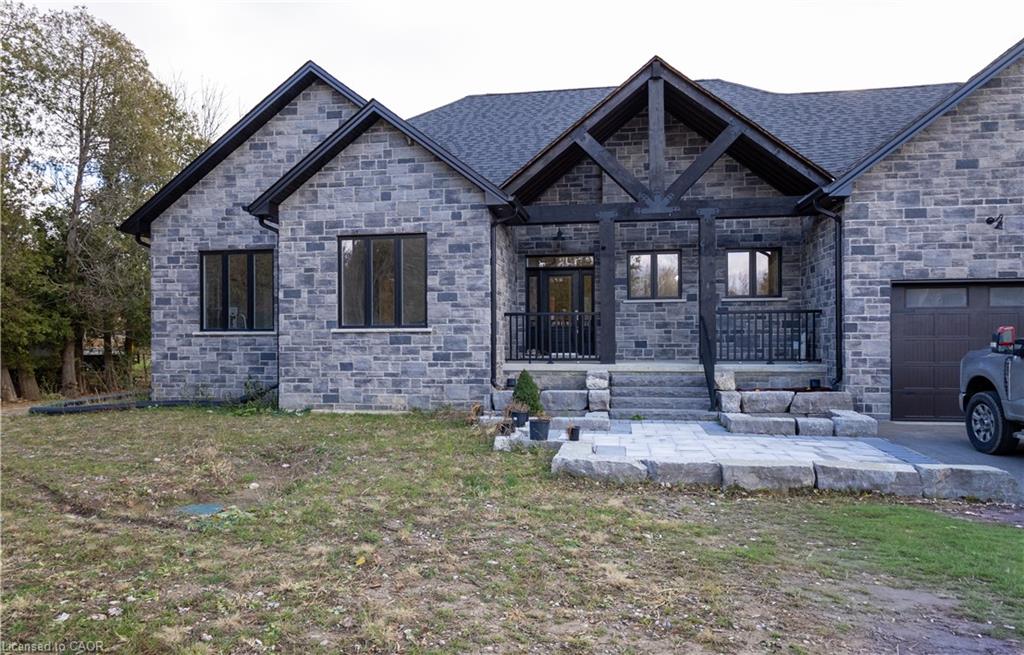 Two homes on one property! Stunning new 3-bedroom, 2.5-bath stone bungalow on 1 acre with an additional home and detached garage—perfect for in-laws, generational families. Open-concept living with vaulted ceilings, hardwood floors, wood beams, chef’s kitchen, and large windows. Primary suite with ensuite, walk-in closet, and backyard access. Unfinished 2,000 sq ft basement ready for your personal touch. Peaceful country living just outside Cambridge