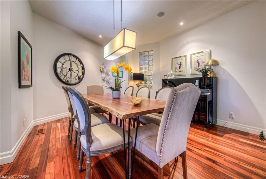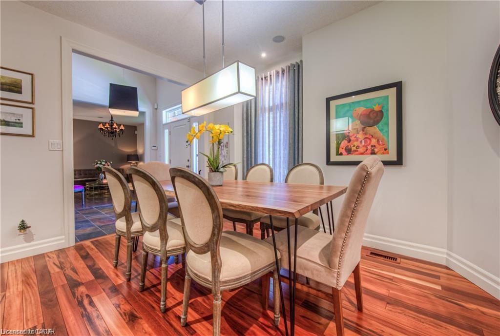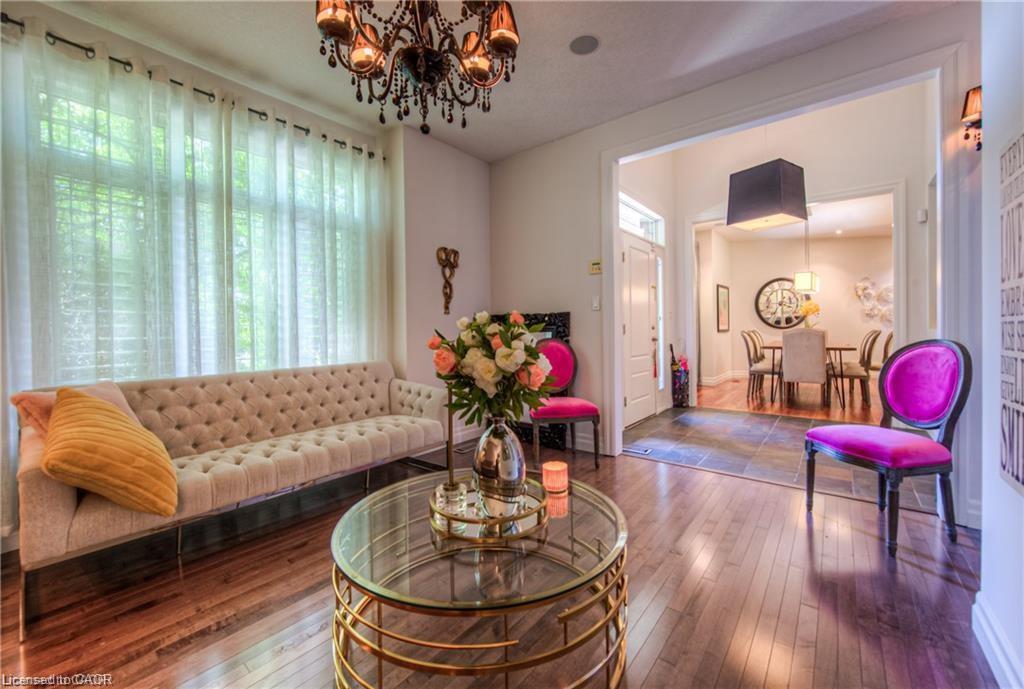 Welcome to 75 Wagon Street — An Executive Masterpiece in Deer Ridge Experience luxury living in one of Kitchener’s most prestigious communities. Nestled on a quiet, tree-lined street in Deer Ridge Estates, this exceptional executive residence offers over 5,000 sq. ft. of meticulously finished living space designed for comfort, sophistication, and effortless entertaining. From the first impression, this home captivates with its timeless brick-and-stucco façade, striking rooflines, and beautifully landscaped curb appeal. Step inside to discover an open and inviting layout where dramatic ceiling heights, expansive windows, and premium finishes create a sense of grandeur and warmth throughout. At the heart of the home is the showstopping great room, featuring a soaring two-storey wall of windows and a designer gas fireplace — a perfect balance of elegance and relaxation. The chef’s kitchen impresses with a massive island, granite countertops, custom cabinetry, built-in appliances, and a generous walk-in pantry — ideal for hosting or daily family living. The main-floor primary suite offers a private retreat with two walk-in closets, a spa-inspired ensuite, and direct access to your serene backyard escape. Upstairs, spacious bedrooms and a versatile loft provide flexibility for family, guests, or a home office. The fully finished lower level transforms everyday living into entertainment bliss, complete with a custom bar, games and media zones, wine cellar, and fireplace — perfect for memorable gatherings. Outdoors, enjoy your private backyard oasis featuring a covered porch, oversized deck, soothing waterfall, and hot tub — a rare sanctuary just minutes from city life. Located close to Highway 401, scenic Grand River trails, Deer Ridge Golf Club, and top amenities, this residence offers a lifestyle of refined comfort and prestige in one of Waterloo Region’s most coveted neighborhoods.