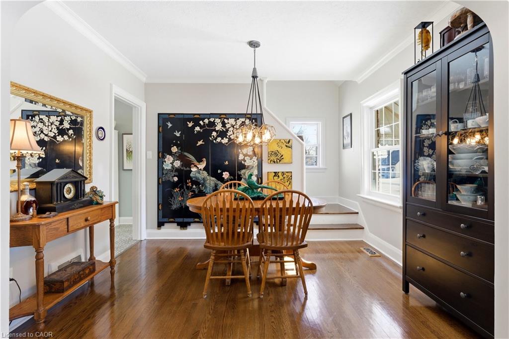 This beautifully updated home PERFECTLY BLENDS TIMELESS CHARACTER WITH MODERN COMFORT, all set in one of Kitchener’s most convenient and established neighborhoods. Enter into the BRIGHT AND INVITING MAIN FLOOR WHERE RICH HARDWOOD FLOORING FLOWS THROUGH the living and dining areas, complemented by elegant crown molding for a touch of classic charm. The REFRESHED KITCHEN featuring newer flooring, a gas stove, built-in microwave, dishwasher, and a stunning tumbled marble backsplash creates a warm and sophisticated focal point. The MAIN FLOOR ALSO FEATURES A VERSATILE BEDROOM w/rear access to the backyard, ideal for guests, a home office, or flexible family living. A well-appointed 4-piece bathroom finished with ultra ceramic tile completes the level. Upstairs, retreat to the private primary suite — w/4-PIECE BATH FEATURING A SEPARATE SHOWER AND A LUXURIOUS AIR-JET HYDROTHERAPY TUB, creating a spa-inspired setting. The FINISHED LOWER LEVEL FURTHER ENHANCES THE HOME’S LIVABILITY, w/a separate den currently used as a 3rd bedroom, a dedicated laundry area & ample storage space. A thoughtfully added SIDE ENTRANCE PROVIDES ADDED FUNCTIONALITY AND FUTURE FLEXIBILITY. Step outside to a BEAUTIFULLY LANDSCAPED YARD DESIGNED FOR BOTH RELAXATION AND ENTERTAINING, complete with a spacious deck perfect for summer gatherings and a newly constructed retaining wall completed in 2025. The DETACHED SINGLE GARAGE IS A STANDOUT FEATURE, equipped with exterior dimmable pot lights and bright interior LED lighting — ideal for hobbyists, additional workspace, or secure parking. Ideally located just minutes from Downtown Kitchener, the ION LRT, parks, schools, Kitchener Market, shopping, and major commuter routes, this home offers the PERFECT COMBINATION OF LIFESTYLE, CHARM, AND EVERYDAY CONVENIENCE. Whether you’re a first-time buyer, downsizer, or investor, 78 Stirling Avenue South presents an exceptional opportunity to own a move-in ready home in a truly central location.