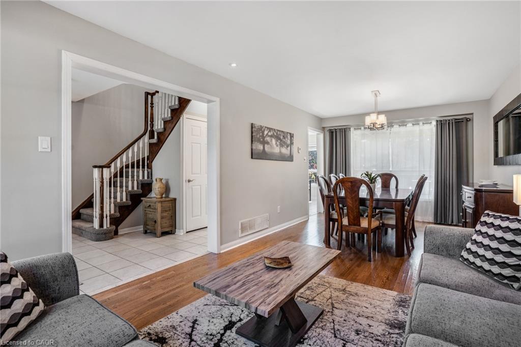 Welcome to 795 Saginaw Parkway, a 4 bed 2 storey in a sought after Cambridge neighbourhood with beautiful curb appeal including newer barn door style double car garage doors and all brick facade. Step inside to the bright and airy foyer which opens up to the formal living and dining room with gleaming hardwood floors, perfect for holiday gatherings, celebrations and entertaining. The kitchen is complete with stainless steel appliances, modern backsplash and breakfast bar and has sliding glass doors leading you out to your expansive pool sized private yard with a large newly built deck and canopy to enjoy the outdoors. Back inside the spacious layout of the main floor, you'll love to get cozy in the main floor family room with the gas fireplace decorated with a mosaic tile on the white mantel. You'll also find a 2 pce bath and laundry room with inside entry from the garage on the main level. Upstairs is an updated 4 pce main bath, and 4 good sized bedrooms including a primary suite with a walk in closet and an ensuite ready for you to create your own spa-like dream bathroom. The basement is partially finished with a roughed in bathroom, bedroom and kitchenette or wet bar, just awaiting your finishes. This meticulously maintained home is located in a well appointed neighbourhood with great schools, shopping, and easy access to highway 401 for commuters, don't miss your chance to make this your dream home!