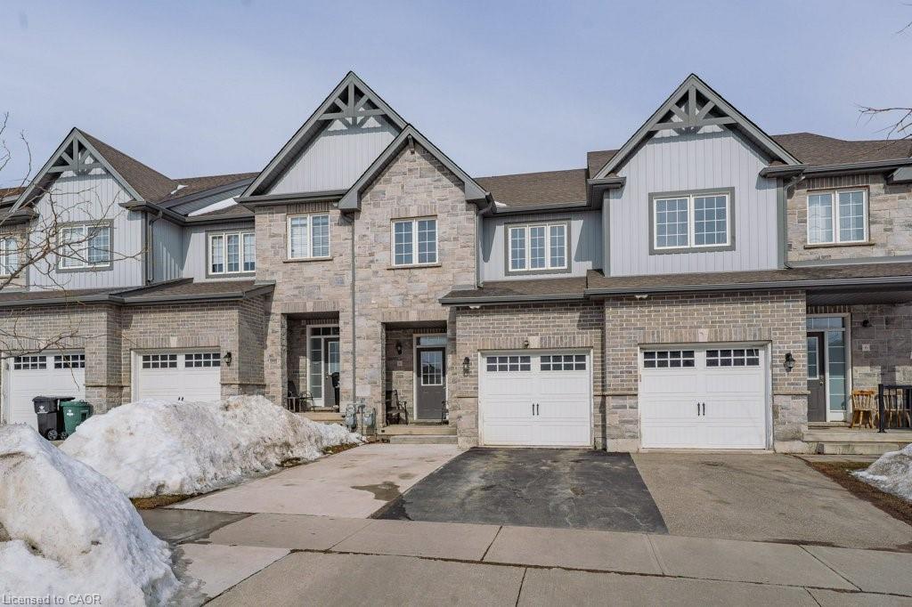 Beautiful freehold townhouse located in the desirable Huron area. Offering 3 bedrooms and 2.5 bathrooms with a bright open concept main floor. Welcoming foyer with convenient access to the garage. Spacious kitchen featuring ample counter space, pantry, breakfast bar, and stainless steel appliances, overlooking the large living room with walk-out to a private deck, perfect for outdoor entertaining and summer BBQs. The second floor offers generously sized bedrooms and laundry room. The primary bedroom features a functional layout with space for a home office, a walk in closet, and a private ensuite bathroom. The unfinished basement with 3 piece bathroom rough-in provides excellent potential for future development. Extended concrete driveway allows parking for up to 3 vehicles. Prime location close to schools, parks, shopping, banks, restaurants, coffee shops, and minutes to conestoga College Highway 401.
