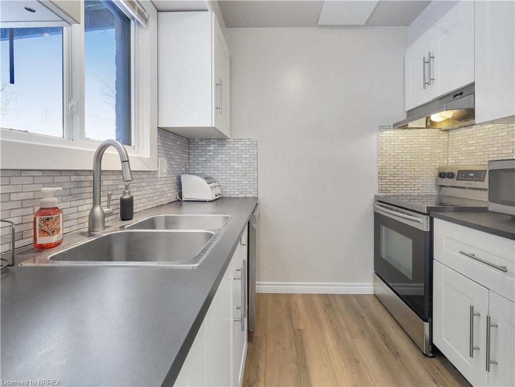 Welcome to 8 Winter Court, a beautifully updated semi-detached home located in the sought-after North Galt neighbourhood. Offering three bedrooms and a functional family-friendly layout, this home is perfectly situated within walking distance to schools, parks, shopping, and provides quick access to Highway 401, ideal for commuters. From the moment you arrive, you’ll notice the attractive curb appeal, extra-wide driveway, and generous green space. Inside, the bright main floor features a spacious living room highlighted by a large bay window that fills the space with natural light. The eat-in kitchen offers a sizeable dining area and access to the fully fenced backyard, complete with an interlock patio and garden shed, perfect for outdoor entertaining and everyday family living. Upstairs, you’ll find three well-sized bedrooms with great closet space, along with a modernized four-piece bathroom featuring quartz countertops and updated finishes. The fully finished basement adds valuable living space with a large recreation room, three-piece bathroom, laundry area, and plenty of storage options. Tucked away on a quiet court and close to all amenities, this move-in ready home is an excellent opportunity for families, first-time buyers, or investors alike.