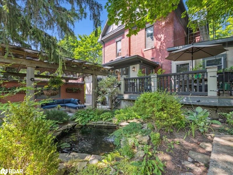 Outside, the unique patterned slate roof and charming wrap-around porch add to the home's curb appeal. The peaceful backyard oasis, featuring a fish pond, covered pergola and a lovely perennial garden that blooms in all seasons, is truly a private retreat for family and friends. A detached double garage provides excellent parking and storage solutions. So many living options with this legal triplex, don't miss this one-of-a-kind home built for family life.