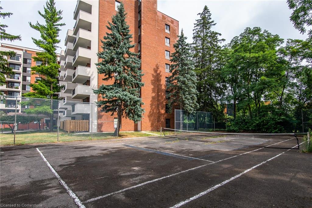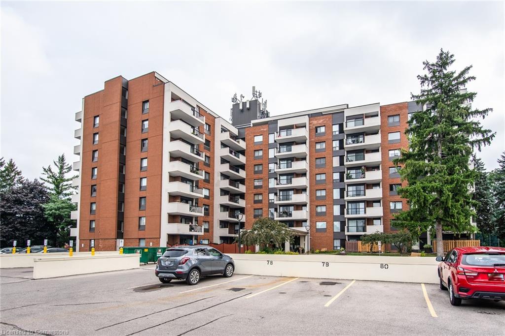 Welcome to Spruce Grove! Bright and spacious 2-bedroom end-unit condo with 2 owned underground parking spaces. Open-concept layout with kitchen open to living room and walkout to private balcony. Features 1.5 baths, laundry on the same floor, and great building amenities: indoor pool, exercise room, games room, party room, guest suite, guest parking, visitor parking and tennis court. Excellent location near Kitchener Auditorium with easy expressway access.
