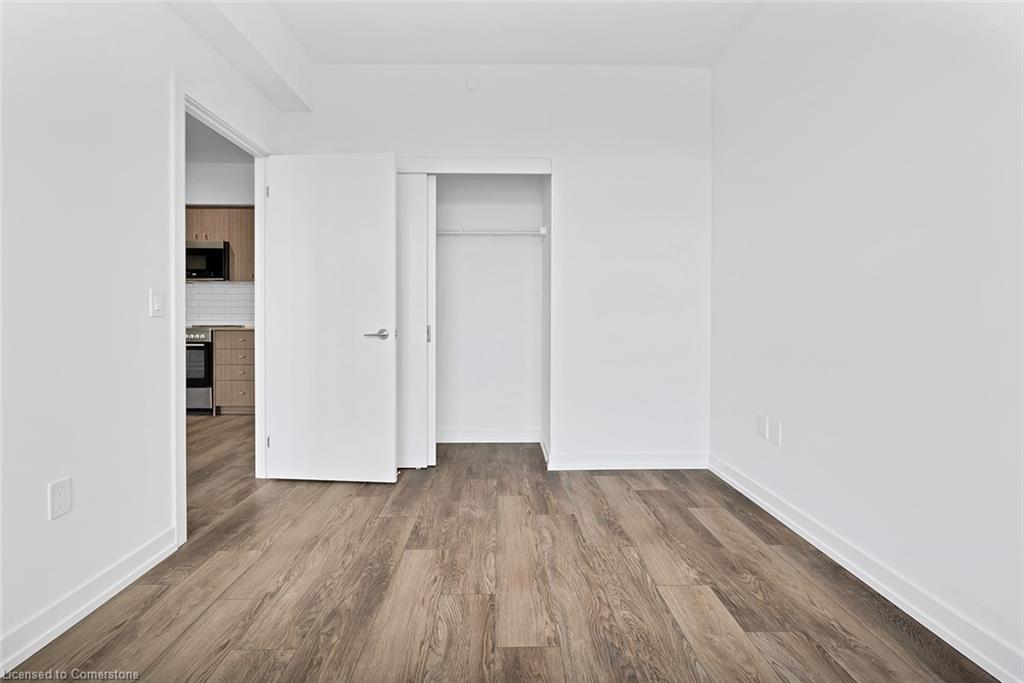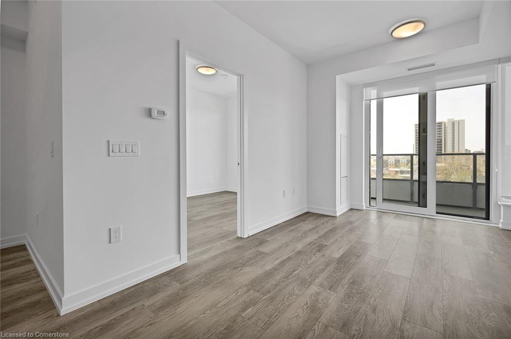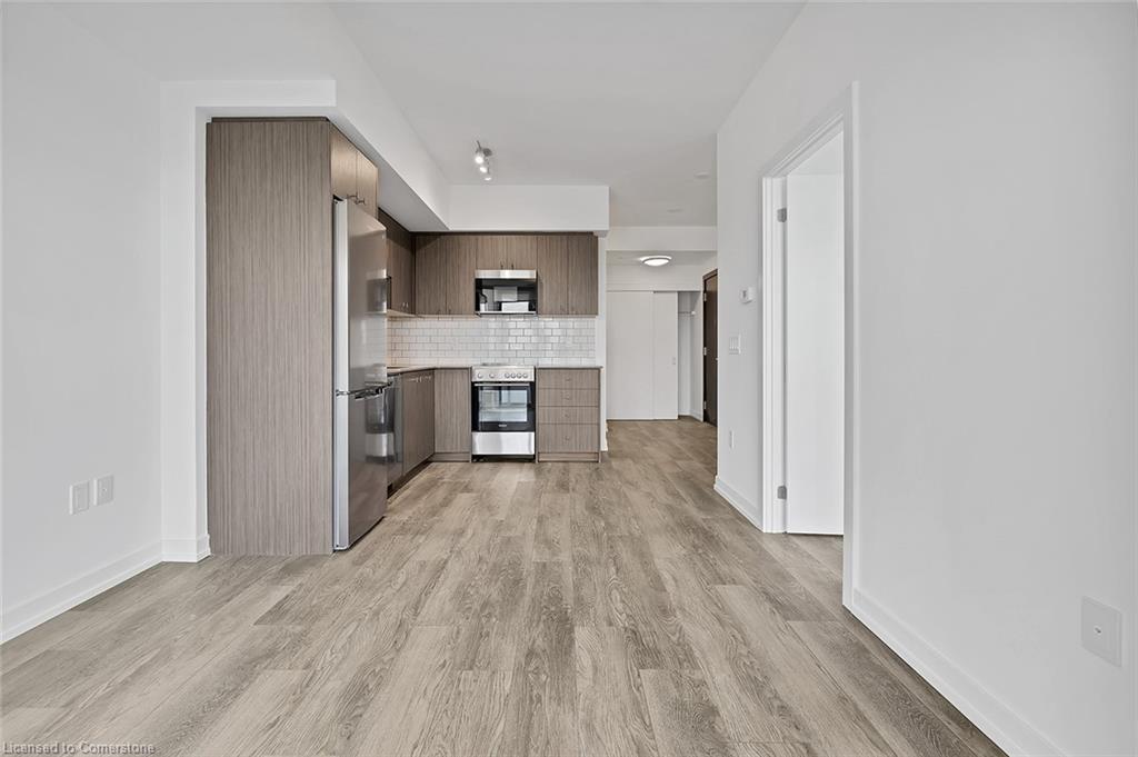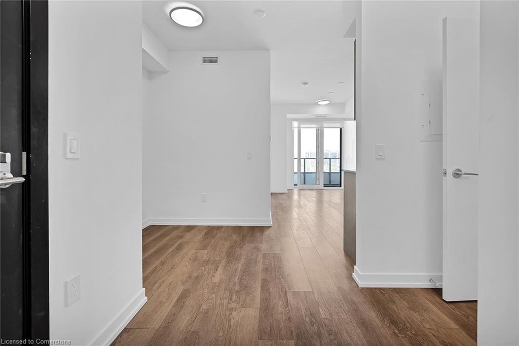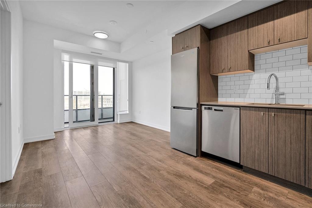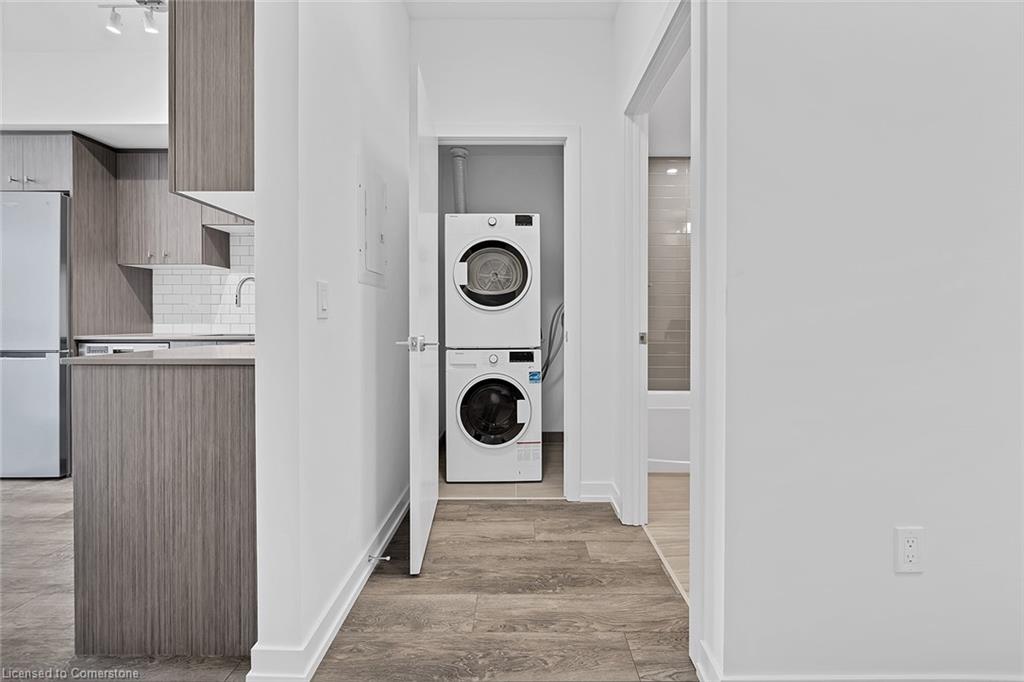 This modern 1 bedroom plus den condo at Station Park in downtown Kitchener offers a perfect blend of urban convenience and contemporary living. The unit features an open concept layout with a spacious living area, a sleek kitchen with stainless steel appliances and granite countertops, a cozy bedroom with ample closet space, and a versatile den that can be used as a home office. Large windows allow plenty of natural light to illuminate the space, creating a bright and inviting atmosphere. Enjoy the convenience of in-suite laundry, a private balcony overlooking the city skyline, and access to a range of building amenities which include: Two-lane Bowling Alley with lounge, Premier Lounge Area with Bar, Pool Table and Foosball, Private Hydropool Swim Spa & Hot Tub, Fitness Area with Gym Equipment, Yoga/Pilates Studio & Peloton Studio , Dog Washing Station / Pet Spa, Landscaped Outdoor Terrace with Cabana Seating and BBQ’s, Concierge Desk for Resident Support, Private bookable Dining Room with Kitchen Appliances, Dining Table and Lounge Chairs, Snaile Mail: A Smart Parcel Locker System for secure parcel and food delivery service. With its prime location steps away from transit, restaurants, shops, and entertainment venues, this condo offers the ultimate urban lifestyle in the heart of Kitchener.
