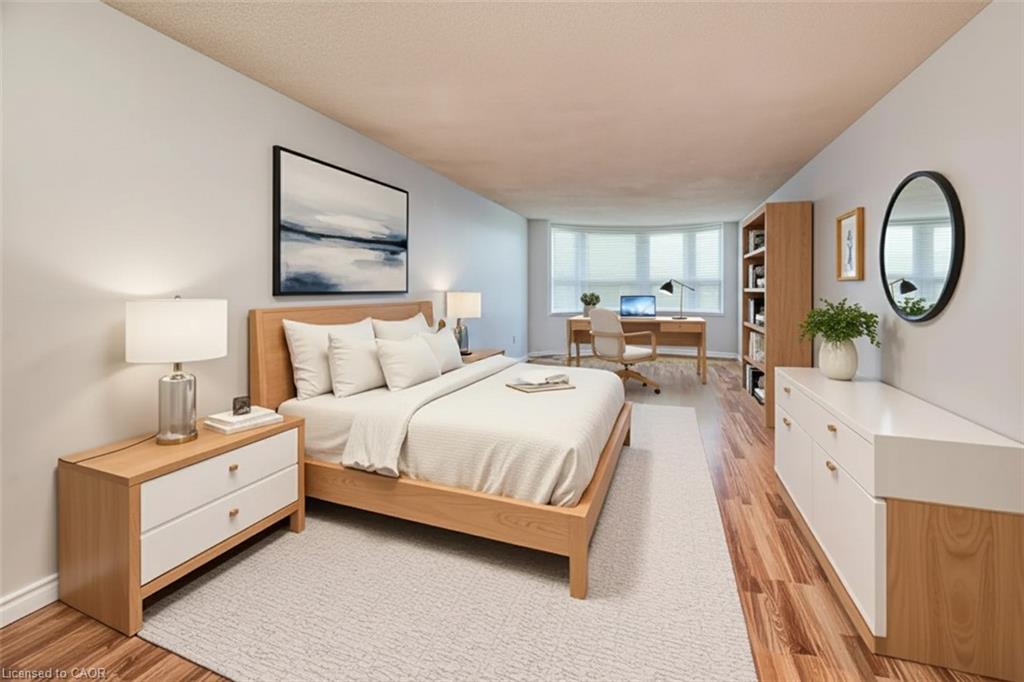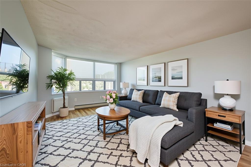 Welcome to 55 Green Valley Drive Unit #811, perfect for first time home buyers, investors and downsizers, A beautifully bright suite with stunning sunset views and very reasonable condo fees. This spacious unit is immaculate with extensive updates and offers a great spot in underground covered parking. A very practical layout features spacious eat-in kitchen, huge living/dining room and large bedroom with plenty of room for in home office. Updates include: light fixtures and switches throughout, ceramic floor, Back splash and faucet in Kitchen, Updated bathroom with new vanity, mirror and faucets, updated baseboards, newer stacking washer/dryer. brand new microwave A/C Unit, as well as fresh paint. This unit is in absolute mint condition and is move in ready with quick possession available. Very well maintained building with new windows. Extensive amenities include: covered parking, indoor pool, games/party room, exercise room, and car wash area on parking garage. Excellent location with easy access to HWY 401, Conestoga College, grocery store and restaurants within walking distance, walking trails, parks and so much more! Some photos have been virtually staged.