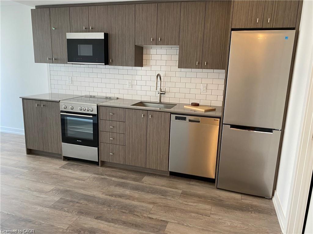 **** FOR LEASE****Carpet Free One bedroom one bathroom unit in the highly anticipated Station Park. This unit comes along with underground parking and locker. It is tastefully designed with functional space, dining area and a 50 sq ft balcony. New Stainless Appliances and Stackable Washer/Dryer in suite. Internet is included in lease. Amenities included: Two-lane Bowling Alley with lounge, Premier Lounge Area with Bar, Pool Table and Foosball, Fitness Area with Gym Equipment, Yoga/Pilates Studio & Peloton Studio , Dog Washing Station / Pet Spa, Landscaped Outdoor Terrace with Cabana Seating and BBQ’s, Concierge Desk for Resident Support, Private bookable Dining Room with Kitchen Appliances. Steps to the new transit hub, across from Google, close access to highway and bus routes. LRT is just outside the front door on King Street. 15 minutes to both Universities and 5 min. walk to the School of Pharmacy and MacMaster's School of Medicine.