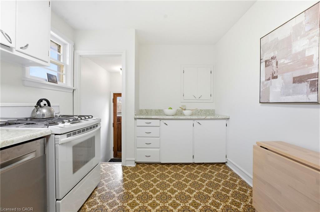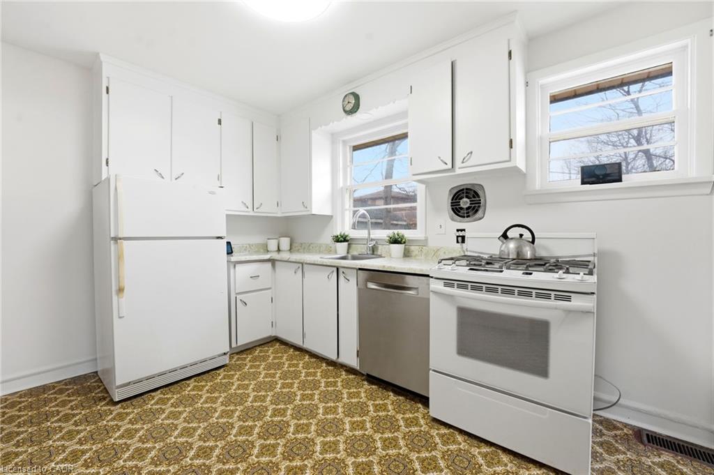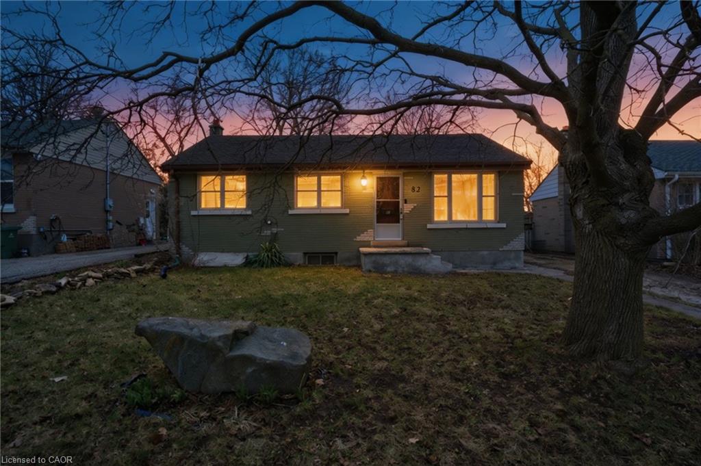 Red brick may be classic, but green brick is memorable! Welcome home to 82 Glenview Avenue in East Galt. This green brick bungalow has been owned by the same family for over 70 years and is finally making its MLS debut! Stepping into the home, you will immediately find charm in the mid-century shelving/entry divider in the front foyer. Original hardwood flooring takes you through the cozy living room with a large window looking out over the front yard. The eat-in kitchen provides you two opportunities: live simple and keep the charm, or easily upgrade for a more modern appeal! Three bedrooms, all with hardwood flooring, are situated on the other wing of the home, whilst the 4pc bathroom, linen closet, and coat closet complete the main floor. The untouched basement area is sprawling and offers you the opportunity to design as you please with the added benefit of a bathroom rough-in already in place. You are sure to love the yard at this home, offering a lot size that exceeds roughly 70% of comparable bungalow sales in the city over the last year! Being in a mature neighbourhood steps away from parks, schools, and a five minute drive from downtown Galt, makes this location ideal for all buyers! Don't miss out on the opportunity to make 82 Glenview your home. Book your showing today! Roof (2013), Furnace + A/C (2021), Water Softener (~5 years), Kitchen Professionally Painted (2026), Professional Exterior Parging (2026).