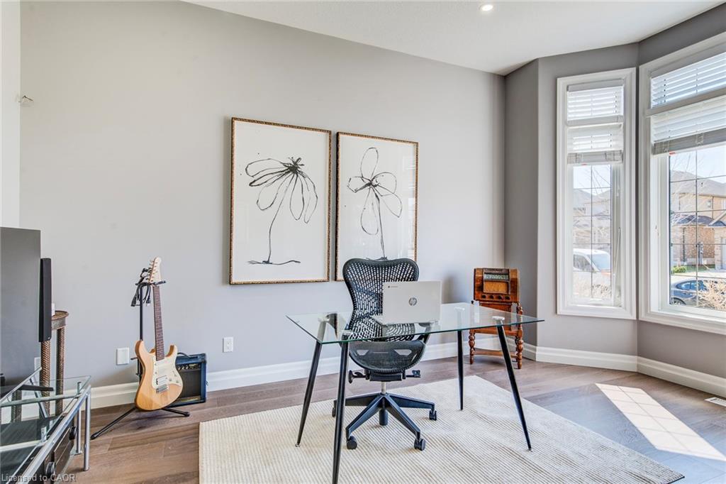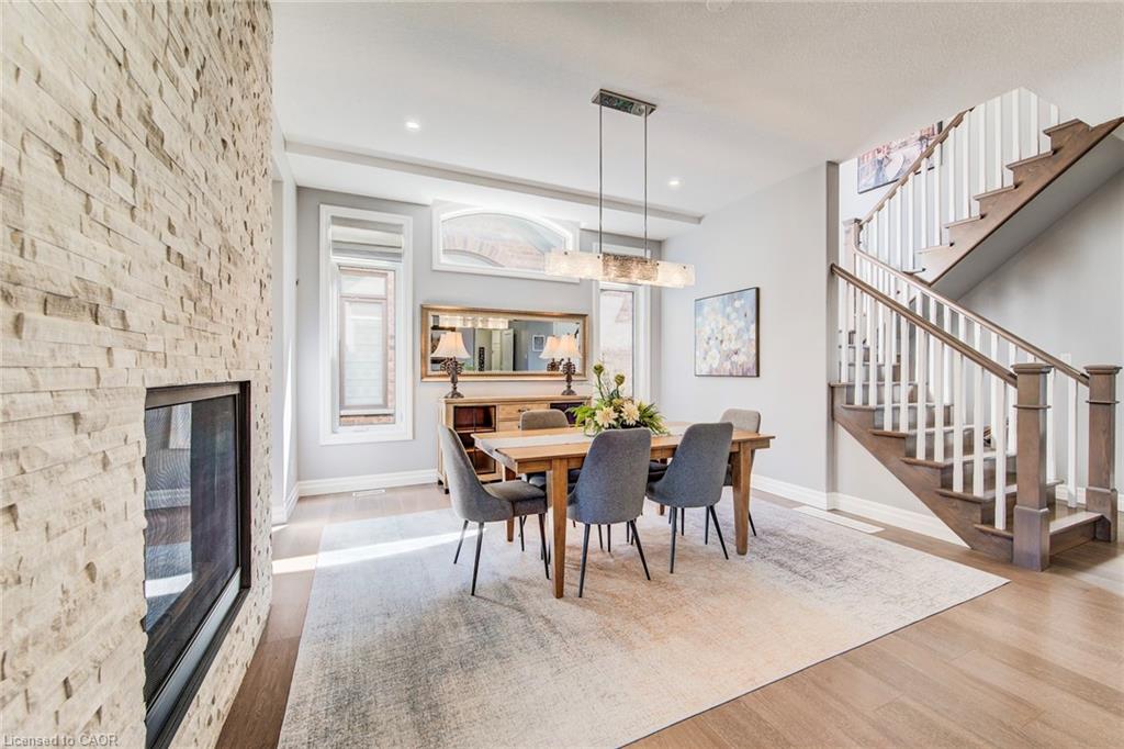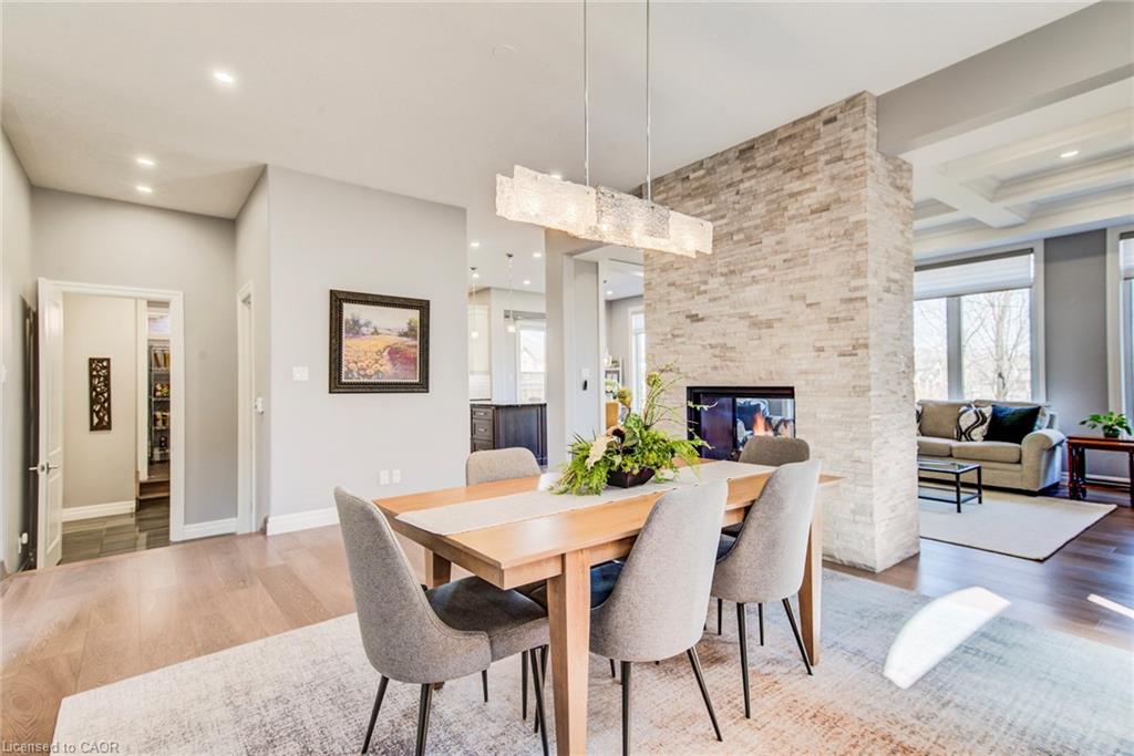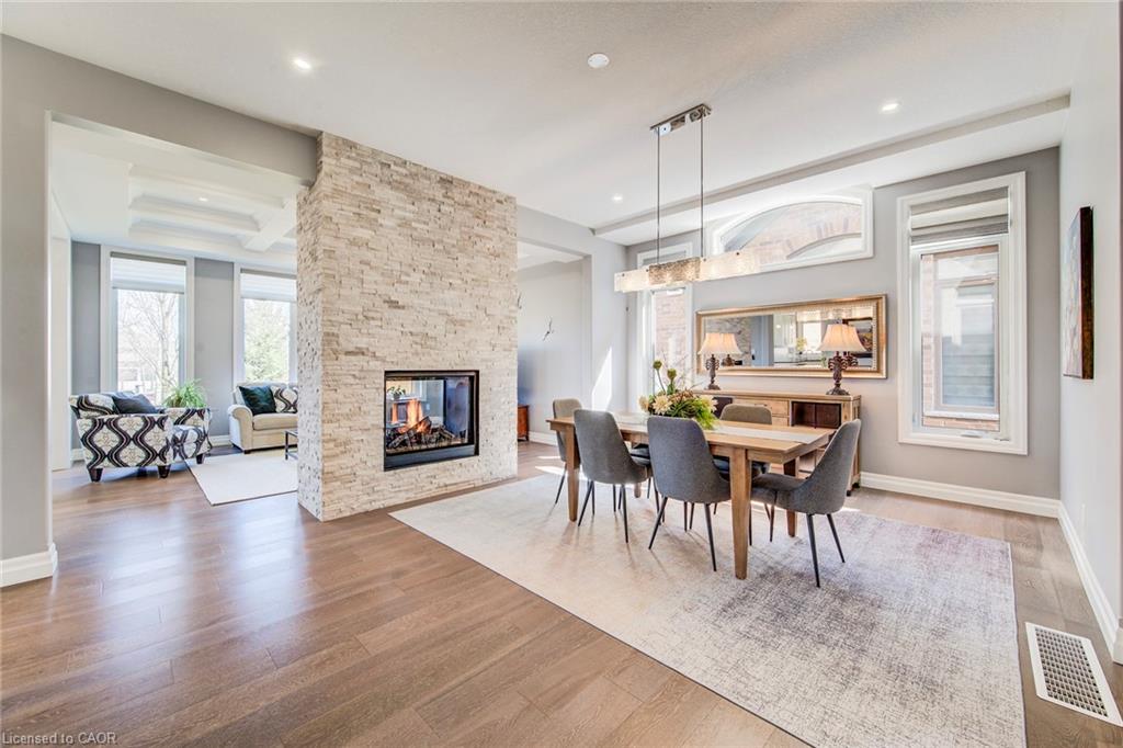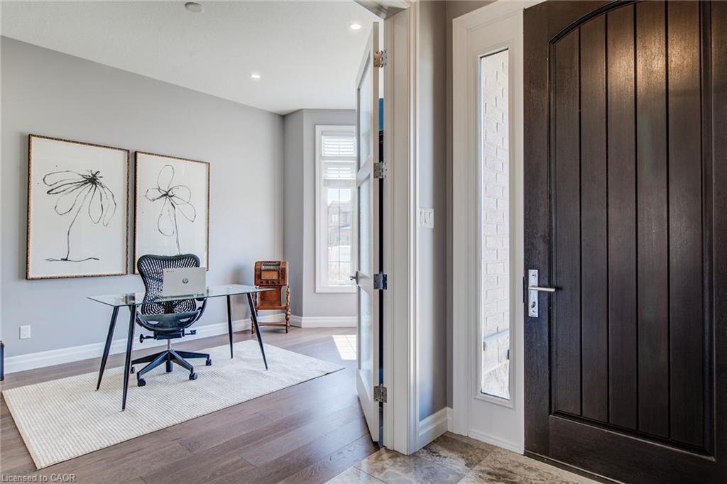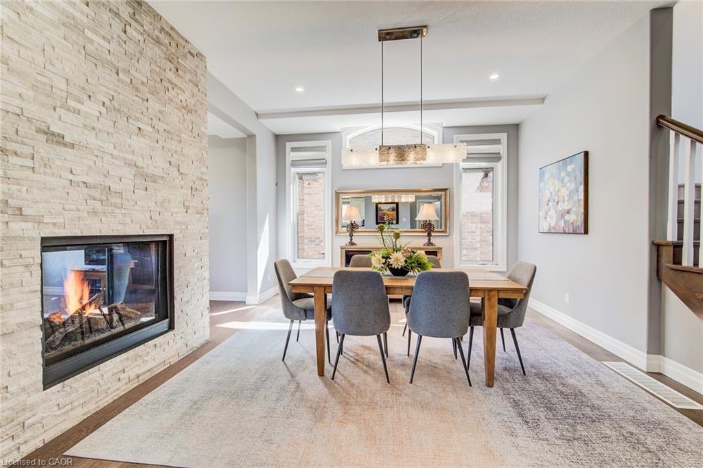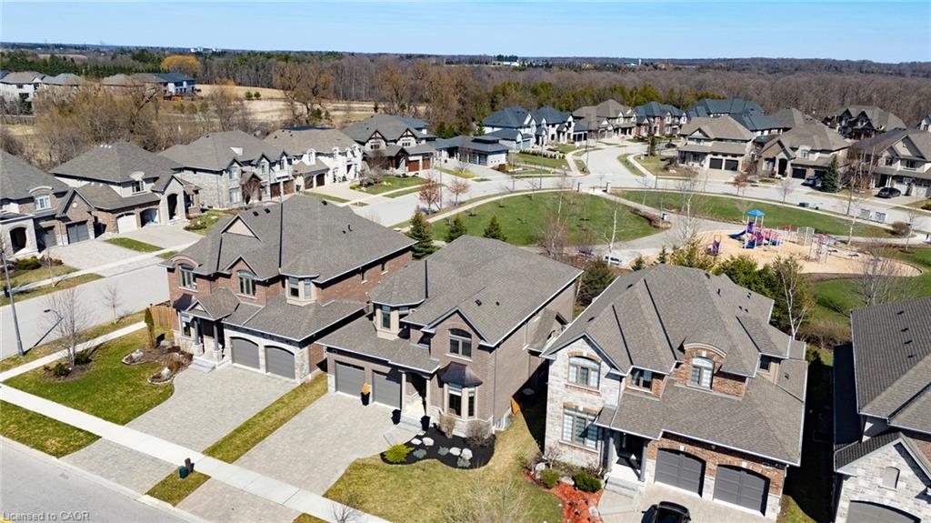 Welcome to this RTS Homes-built executive residence in desirable Carriage Crossing, Waterloo, backing onto a park w/ direct backyard access. Ideal for families seeking space, style and convenience, this bright home offers 4 generous bedrooms and 4 bathrooms (3+1). The main floor features 10’ ceilings and hardwood and ceramic flooring. The custom kitchen incl. a centre island, granite countertops, stainless steel appliances, under-cabinet lighting, backsplash and a large walk-through pantry, plus a bright breakfast area w/ walkout to the covered back porch. The large living room has a waffle ceiling and two-way gas fireplace, while the formal dining room is spacious and perfect for entertaining. A main floor office is located just off the foyer. The 2-pc powder room completes the main floor. Upstairs, the master bedroom is a luxurious retreat w/ walk-in closet and 5-pc ensuite featuring in-floor heating, double vanities, soaker tub, glass-enclosed tiled shower and separate water closet. Bedroom 2 has a 3-pc ensuite w/ glass-enclosed tiled shower, while bedrooms 3 and 4 share a 5-pc Jack & Jill bathroom, each w/ walk-in closet. A loft provides a cozy reading or gaming nook, and the second-floor laundry incl. custom cabinetry. The professionally landscaped lot incl. an interlocking stone driveway, covered back porch, stone patio w/ gas fireplace, pergola w/ retractable cover, natural gas BBQ hookup and partially fenced backyard with park access. App-controlled technology incl. garage doors, inside entry, blinds, lights, Nest thermostat, in-floor heating in the master bath and an EV charger. High-end finishes throughout, incl. updated countertops, hardwood flooring, ceramic tile, and many pot lights, make this home impressive for even the most discerning buyer. Minutes from RIM Park, Grey Silo Golf Club, trails, UofW, Wilfrid Laurier University and easy expressway access, this home blends luxury, lifestyle, and convenience in a beautiful park-side setting.