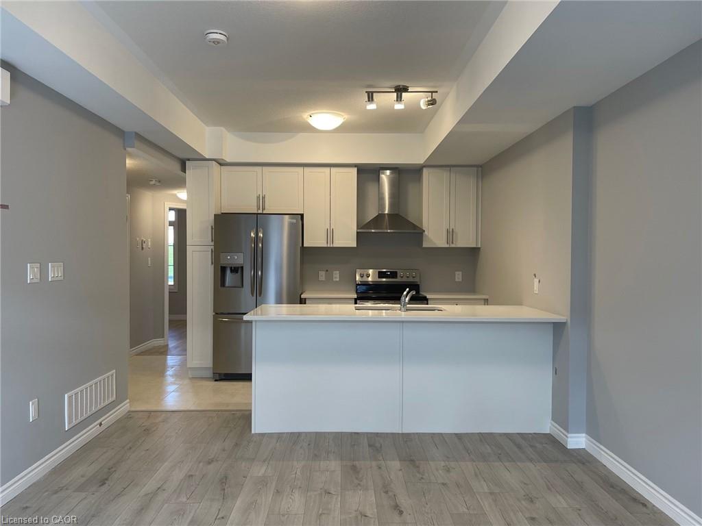 Available June 1, 2026. Welcome to Wallaceton Urban Townhouses, located in the family-oriented community of Huron Village. Newly built by Fusion Homes, this spacious open-concept unit offers just under 1,000 square feet of living space, featuring 2 bedrooms and 2 full bathrooms, a breakfast bar, upgraded appliances, a walk-in shower, premium flooring, and a stackable washer and dryer. One surface parking space is included. Situated in Kitchener’s desirable south end, you’ll enjoy convenient access to schools, amenities, recreation facilities, scenic hiking trails, and quick connections to the highway.