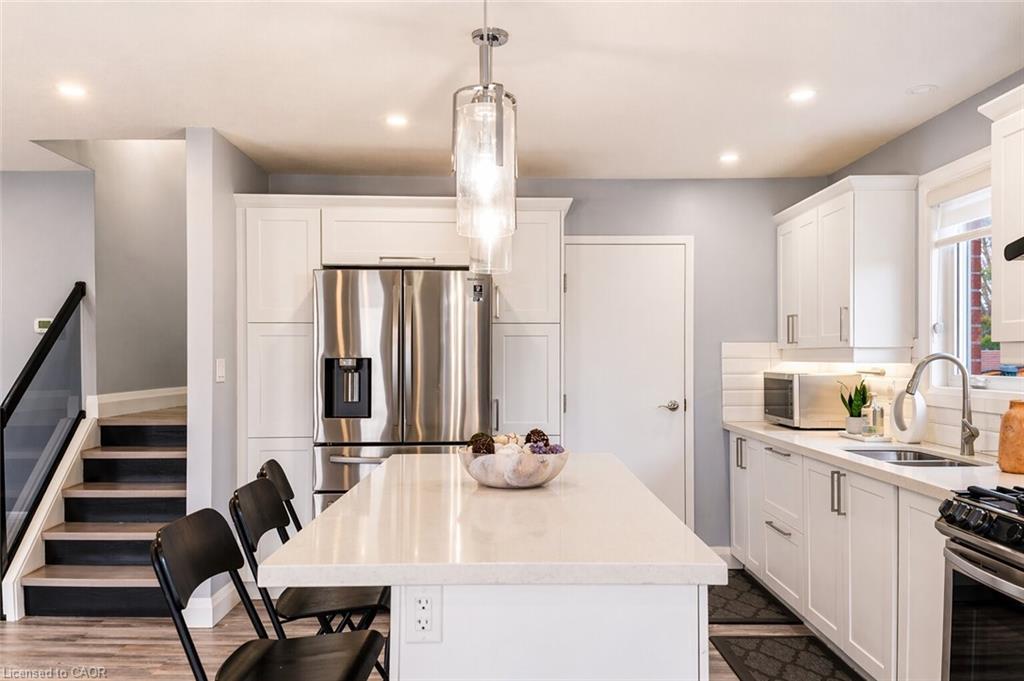 !! Legal duplex !! in the highly desirable Brigadoon neighbourhood! Welcome to 86 Carlyle Drive a well-maintained all-brick detached home offering exceptional flexibility for investors or multi-generational living. The upper level features 3 spacious bedrooms, a full bathroom, and a bright, functional layout, while the updated kitchen is equipped with quartz countertops and a gas stove, perfect for everyday living and entertaining. The lower level offers a separate entrance to a fully legal 1-bedroom apartment, providing an excellent opportunity for additional rental income while maintaining privacy. Recent upgrades include a brand new furnace and A/C (2026), ensuring year-round comfort and peace of mind. Unbeatable location with exceptional future potential just steps from the upcoming Carlyle Park revitalization, expected to introduce new playground amenities and enhanced trails, adding long-term value to the neighbourhood. Ideally situated for commuters with quick access to Highway 401 and Highway 8, and just minutes from Conestoga College and the shopping and amenities at Sportsworld Crossing. Situated on a generous lot with a beautifully landscaped front yard and a spacious backyard, perfect for families or entertaining. A rare opportunity to own a turnkey legal duplex in one of Kitchener’s most sought-after communities!