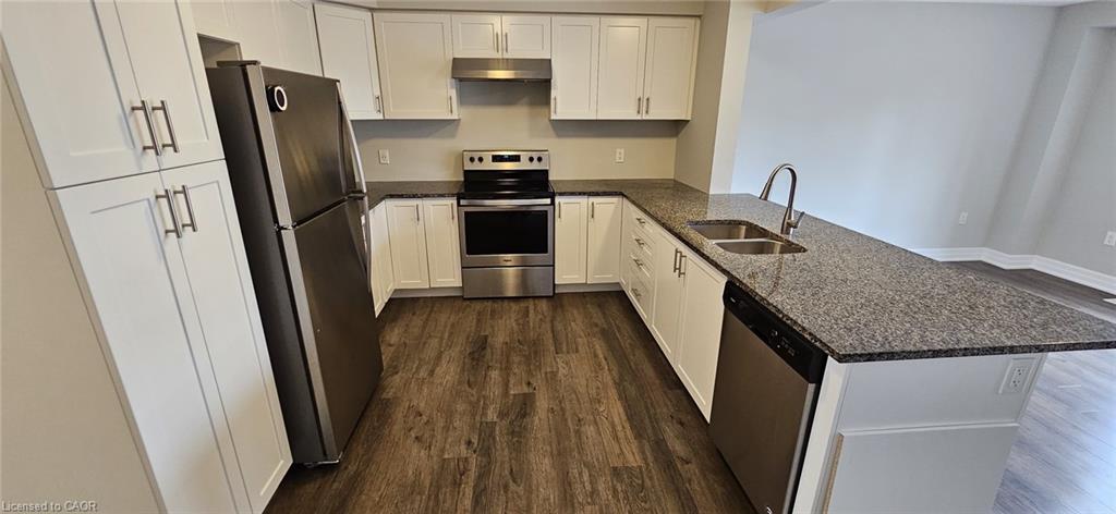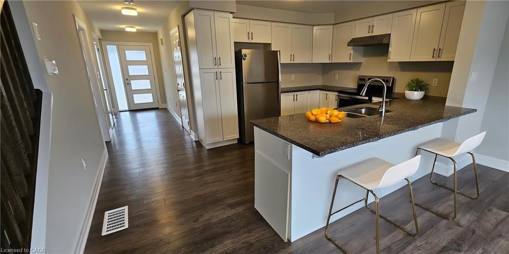 MODERN TOWNHOUSE LIVING AT 86 NIESON STREET! Step into this beautifully designed townhouse featuring contemporary finishes and an inviting open-concept layout. The carpet-free main floor boasts a bright living and dining area, with sliding patio doors leading to an outdoor space. The modern kitchen is equipped with stainless steel appliances, ample counter space, and sleek cabinetry. A convenient powder room completes the main floor. Upstairs, you’ll find 3 spacious bedrooms and 2 bathrooms, including a primary suite with a 3-piece ensuite and a walk-in closet. The upper-level laundry adds convenience to your daily routine. Additional features include a single garage, driveway parking for two, AND an unfinished basement for storage. Ideally located close to schools, parks, shopping, and just minutes from the highway. Tenant(s) are responsible for heat, hydro, gas, water, tenant insurance, and hot water heater rental. Available immediately. Virtually Staged.