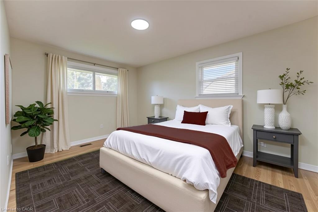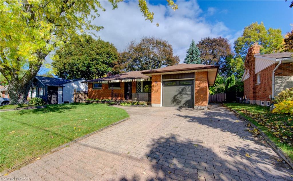Beautiful all brick ranch style bungalow sitting on an expansive lot along a tree lined crescent, in a sought after neighbourhood of Waterloo! The flowing main level floor plan is complimented by large windows and sliders off the kitchen that allow an abundance of natural light into the home highlighting the refinished gleaming hard wood floors. The entire interior has been freshly painted along with new flooring and trim. All new Stainless Steel kitchen appliances with range hood, Quartz counter tops, LED light fixtures, new Google Smart Home thermostat and new garage door with power opener/remotes are some of the additional recent upgrades. A new rear deck off the kitchen slider leads to a spanning rear yard complete with a separate side entrance allowing multi level living quarters or rental opportunities. The front covered concrete porch is complimented by a large front yard with mature trees and flower beds. Book your private showing today!