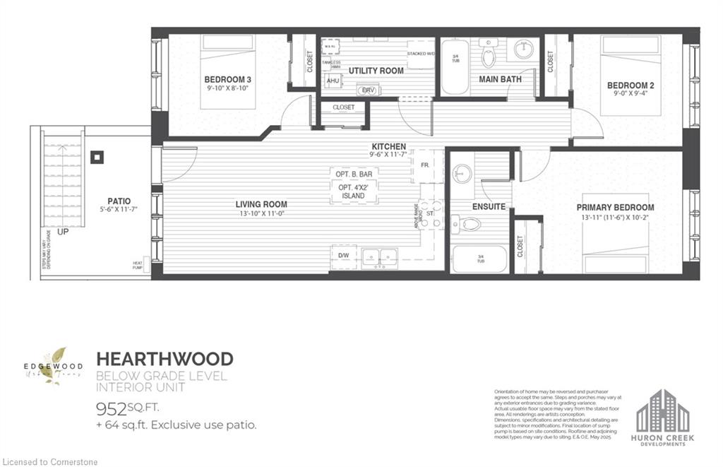 Welcome to the Hearthwood - a stunning 3-bedroom, 2-bathroom lower level unit in a stacked townhome-style condo, perfectly blending urban convenience with natural tranquility. Tucked into the serene Brigadoon Woods, this thoughtfully designed home offers a spacious open-concept layout ideal for both relaxing and entertaining. Step inside to discover generous-sized bedrooms, including a primary suite with ample closet space and a private ensuite. The patio extends your living space outdoors, offering a peaceful retreat surrounded by mature trees and greenery. Enjoy the best of both worlds — nature at your doorstep and all amenities within easy reach. Located close to top-rated schools, shopping, dining, and with quick access to major highways, this home offers exceptional lifestyle and value. Whether you're a first-time buyer, downsizer, or investor, this beautifully maintained condo is a rare opportunity in a sought-after community. Don't miss it! PLEASE VISIT - (((Sales Centre is located at 35 Trillium Drive, Unit 1 in Huron Creek Developments building - lower level )))