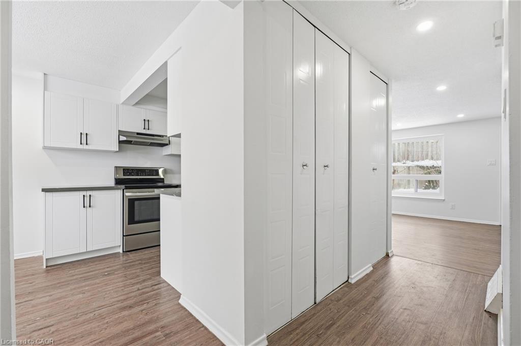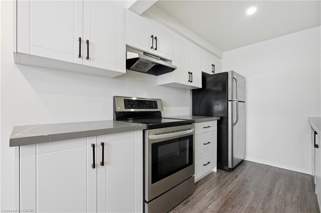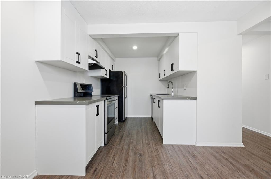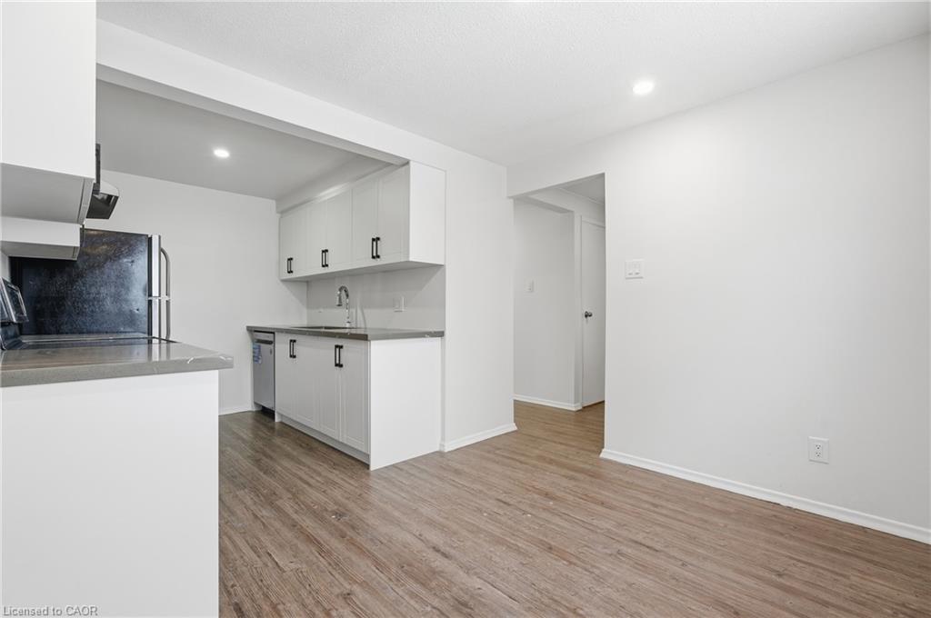 Welcome to 280 Thaler Avenue, Unit 9, Kitchener, nestled in the highly sought-after Chicopee neighbourhood, known for its family-friendly atmosphere, excellent schools and outstanding access to amenities. This beautifully renovated 3-bedroom, 2-bathroom townhome is truly move-in ready. As you step inside, you are immediately greeted by a bright, airy main level featuring new flooring, fresh neutral paint and stylish pot lights throughout. The spacious living room is a true highlight, showcasing a large new window (installed June 2025) that floods the space with natural light, making it ideal for relaxing and entertaining. The eat-in kitchen has been thoughtfully updated that features sleek white cabinetry, quartz countertops, modern pot lighting and stainless steel appliances with new dishwasher. Heading upstairs, you’ll find 3 generously sized bedrooms, each completed with new flooring and pot lights, providing a cohesive and modern look throughout. The upper level is complemented by a stylish 4-piece bathroom. The finished basement adds exceptional value and versatility to this home. It offers a cozy recreation room, perfect for a home office, playroom, media room, or guest space, along with an additional bathroom. The laundry area is conveniently located here, with appliances replaced approximately three years ago and in excellent condition. Significant upgrades including: All windows replaced, with the living room window most recently installed in June 2025 and Central air conditioning replaced in 2018. The condo fee includes full usage of water, maintenance of all exterior doors, windows and roof. Located in a well-managed complex within a family-oriented community, this home is close to Top rated schools including a Catholic school, parks, shopping, public transit and offers easy access to major highways. Whether you’re a first-time home buyer, downsizer or investor, this exceptional townhome checks all boxes. Don’t miss your chance, Book your showing today!