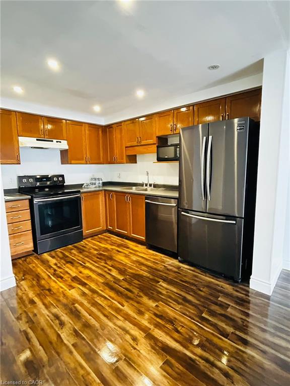 Welcome to 90 Donnenwerth Drive, Kitchener—a charming & spacious freehold townhome now available for lease, ideal for families or working professionals. This thoughtfully designed home invites you in with its bright, open-concept layout that seamlessly connects the kitchen & living areas. The kitchen is perfectly suited for both casual family meals and entertaining, offering a functional space with ample storage. Adjacent to the kitchen, the living room provides a cozy yet spacious area for relaxation. Heading upstairs, you’ll find three generously sized bedrooms, each designed to offer maximum comfort and flexibility. A shared 4-piece bathroom serves the upper level. The fully finished basement offers even more living space, complete with a large recreation room that can be used as a family room, home gym, or media space—the possibilities are endless. Additionally, this level includes a convenient 3-piece bathroom, perfect for use as a private space for family members. With its functional layout, this home provides the perfect balance of space and privacy, ideal for a working professional couple or a family in need of room to grow. Situated in the popular Williamsburg neighborhood, this location offers the best of both convenience and lifestyle. Nearby, you’ll find a variety of amenities to suit every need, including community and fitness centers, scenic parklands, local cafes, and extensive shopping options at nearby power centers. The neighborhood is known for its family-friendly atmosphere and accessibility, providing easy access to schools, public transit, and major routes for commuting. Book your viewing today.