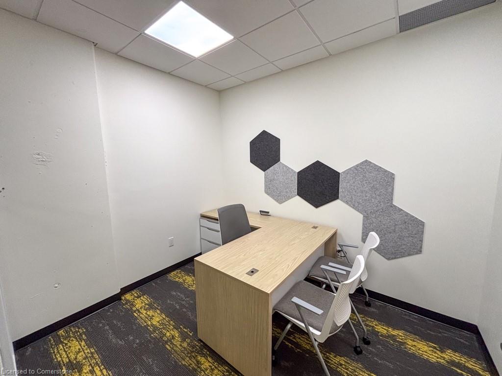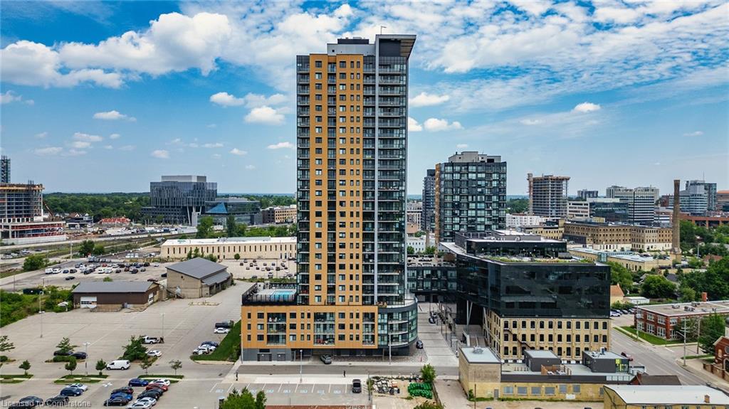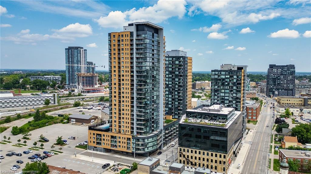 Fully Furnished in the Heart of Downtown Kitchener Open living space featuring a large private terrace facing southeast. This outdoor space offers impressive views and floods the interior with natural light throughout the day. The suite has been thoughtfully upgraded with a modern aesthetic. The kitchen is equipped with Silver Gray granite countertops, a classic white subway tile backsplash, Whirlpool stainless steel appliances, a pull-out spray faucet, a double bowl undermount sink, and sleek 36-inch cabinets with soft-close hardware. The wide plank matte grey engineered flooring adds a contemporary touch. The bathroom contains Silver Gray granite counters, charcoal floor tiles, white horizontal subway tile on the walls, and a stylish LED lighting package that enhances the suite’s modern feel. White custom blinds are also included, along with in-unit storage and state-of-the-art climate control. Rogers internet, water, and heat are included in the rent—tenants are only responsible for hydro. The building offers an array of impressive amenities including a fully equipped gym, a beautifully landscaped rooftop garden, co-working space, a theatre room, and a stylish party room. Located in a prime downtown location, steps from the LRT Central station and a short walk to the GO Train Station, making commuting to Toronto and beyond simple and convenient. King Street’s cafés, restaurants, bars, and boutique shops are all within easy reach. Steps to institutions like Google, the University of Waterloo School of Pharmacy, and McMaster’s Medical School. Nearby, Victoria Park offers a scenic escape with festivals, events, and water activities in the warmer months. The MUSEUM and the Kitchener Market, known for fresh, locally sourced goods. With high ceilings, upgraded finishes, modern appliances Garment Street Condos offers a downtown lifestyle. Ground-floor retail, including a sushi restaurant, adds to the everyday convenience.