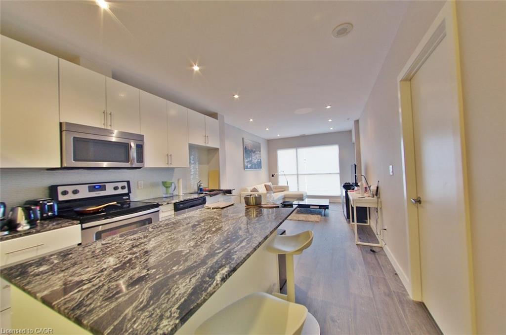 This beautiful spacious and bright suite is one of the popular One Victoria Condominiums of Downtown Kitchener showcases everything you need for modern comfort. Suite 906 boasts an open concept one bedroom layout with floor to ceiling windows. The unit includes one oversized master bedroom, one 4 piece bathroom with a large walk in closet. Numerous upgrades have been done including upgraded light fixtures and windows galore giving you natural light throughout the day. The unit also includes: A Stainless Steel Fridge, Stove, OTR Microwave, Dishwasher, Washer & Dryer - Parking Space - Heat, A/C Source, Water, Use of Building Amenities Listed Below - Durable Laminate Flooring, No Carpet, Granite Countertops - Premium Window Blinds, Large Energy Efficient Windows. Not Included within the Rent: Hydro, Tenant Insurance, TV Service, WIFI & Storage. One Victoria features an extensive list of amenities including: State of the Art Fitness Centre - Theatre/Media Room, Furnished Rooftop Patio with BBQ Terrace, entertainment room with demonstration kitchen, secure indoor parking and bicycle storage & secured entrance. Location is Prime! Close to Google, U OF W School of Pharmacy, McMaster Medical School and the Innovation Centre. Shopping and restaurants all nearby. Take the LRT or take the GO train--all within a few minutes from your door! Available November 1st!