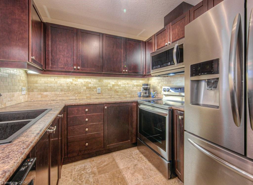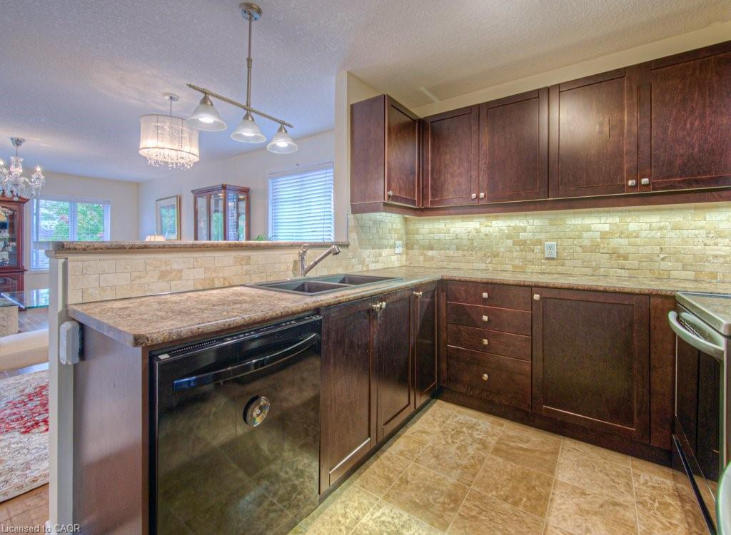 Immaculately maintained and designed with executive style in mind, this stunning freehold bungalow townhome with a walkout basement offers an exceptional blend of comfort, functionality, and modern elegance. The main floor boasts a bright-open concept layout, where the kitchen flows seamlessly into the living and dining areas. Rich dark maple hardwood floors and cabinetry are complemented by a clean, modern title backsplash, adding warmth and sophistication to the heart of the home. The spacious master suite features a walk-in closet and a ensuite highlighted by a massive custom glass and tile shower, while a second bedroom and main floor laundry finish of this level. Downstairs, the fully finished walkout basement impresses with a large recreation room, an additional generous-sized bedroom, a den, and a full bathroom, creating ideal space for extended family, a home office, or a private retreat. Outdoor living equally inviting with a large deck off the living room, overlooking a great-sized fenced backyard complete with an interlocking stone patio below. Combining timeless finishes with a thoughtful floor plan, this home delivers a rare opportunity to enjoy bungalow-style living with the bonus of a fully finished lower level and expansive outdoor space.